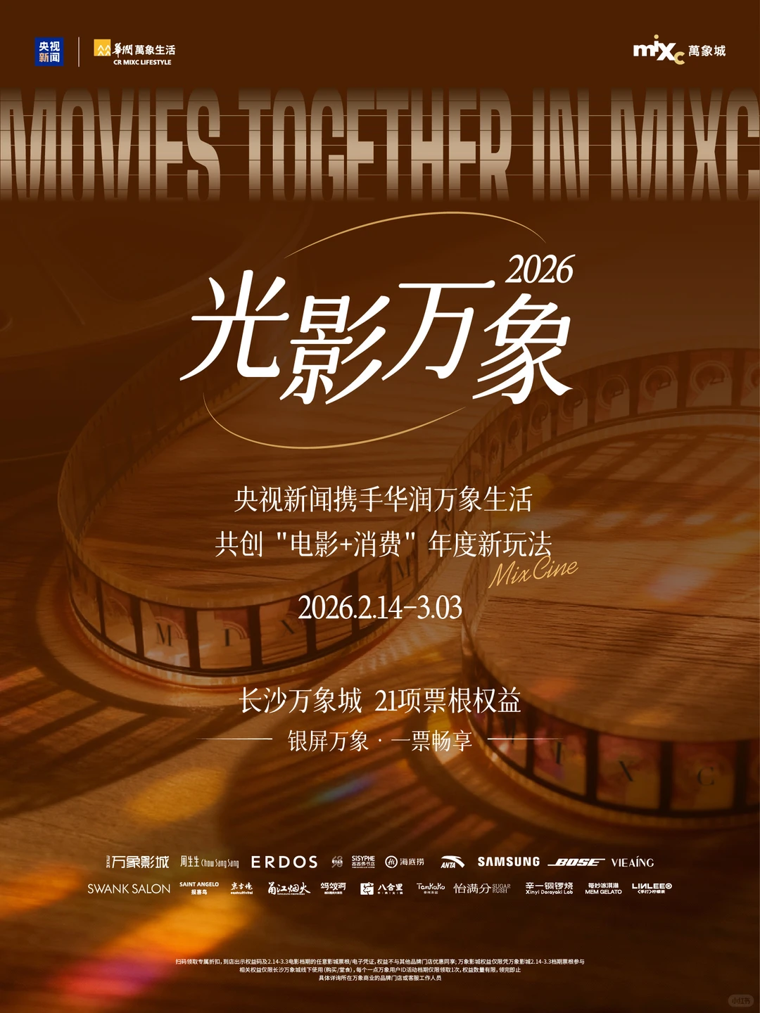 在长沙万象城,上线了央视新闻×华润万象生活联合打造的2026「光影万象」活动,2月14日至3月3日,游客只需带着任意影城电子或纸质票根,搭配“一点万象”的专属权益码,就能解锁21+品牌的满减、至高全单85折福利,从海底捞、特色甜品等餐饮美食,到周生生、安踏等零售品牌,再到西西弗书店、万象影城本身,一张电影票根化身逛吃购物的折扣通行证,观影、干饭、购物的一站式体验,让市民游客的新春消费之旅更具趣味与性价比,不少人看完电影便拿着票根开启“薅羊毛”模式,让商圈的新春热闹更添烟火与新潮。
