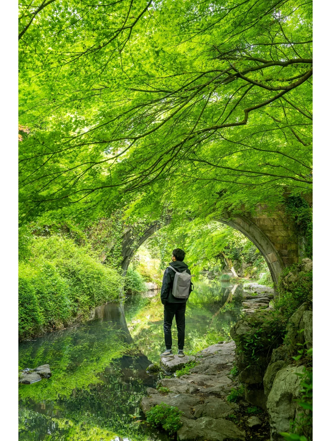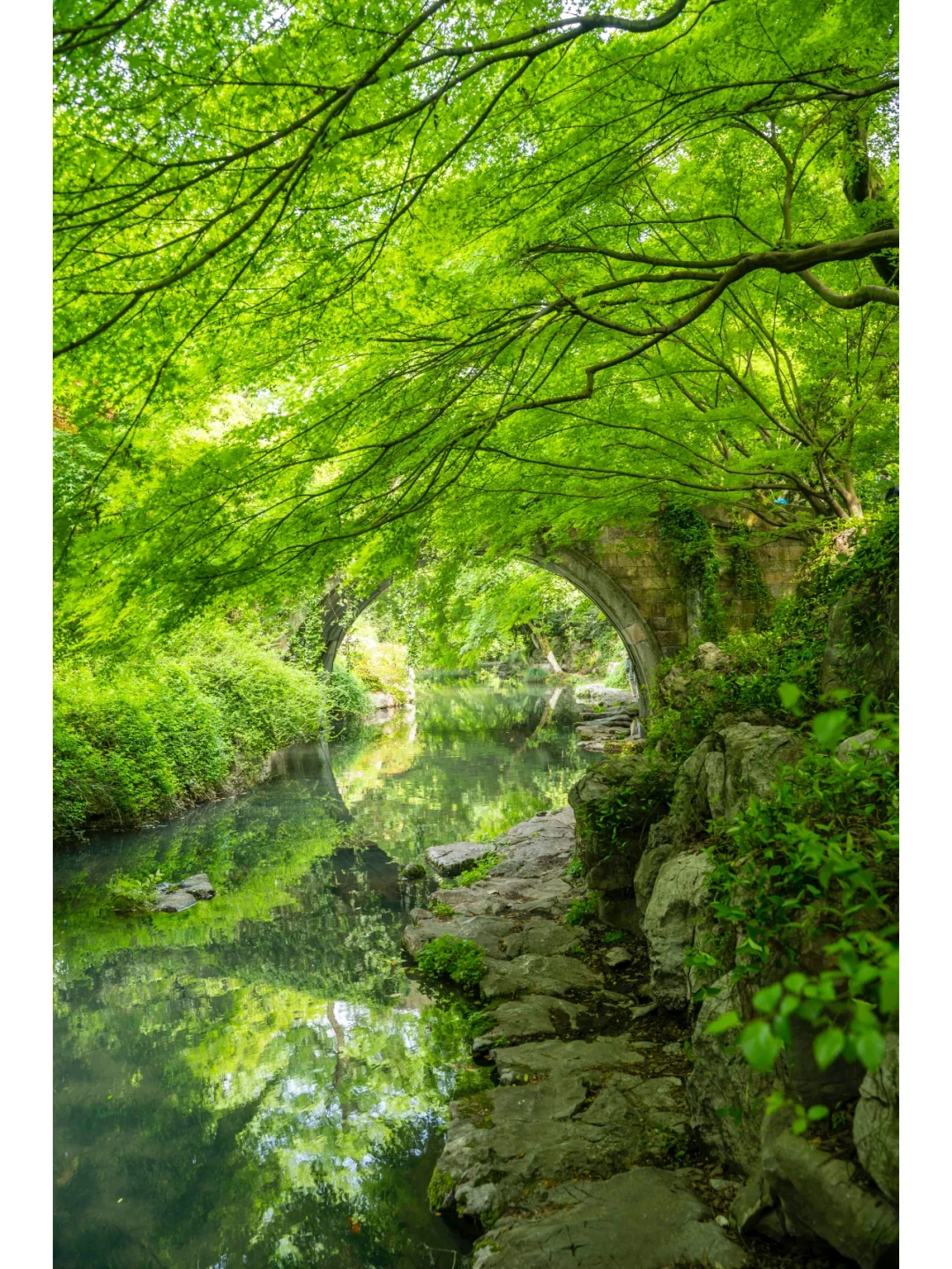 2⃣️只有从桥下的石板路走过才能看到这个桥的全貌,和水中的倒影形成了一个完美的圆形