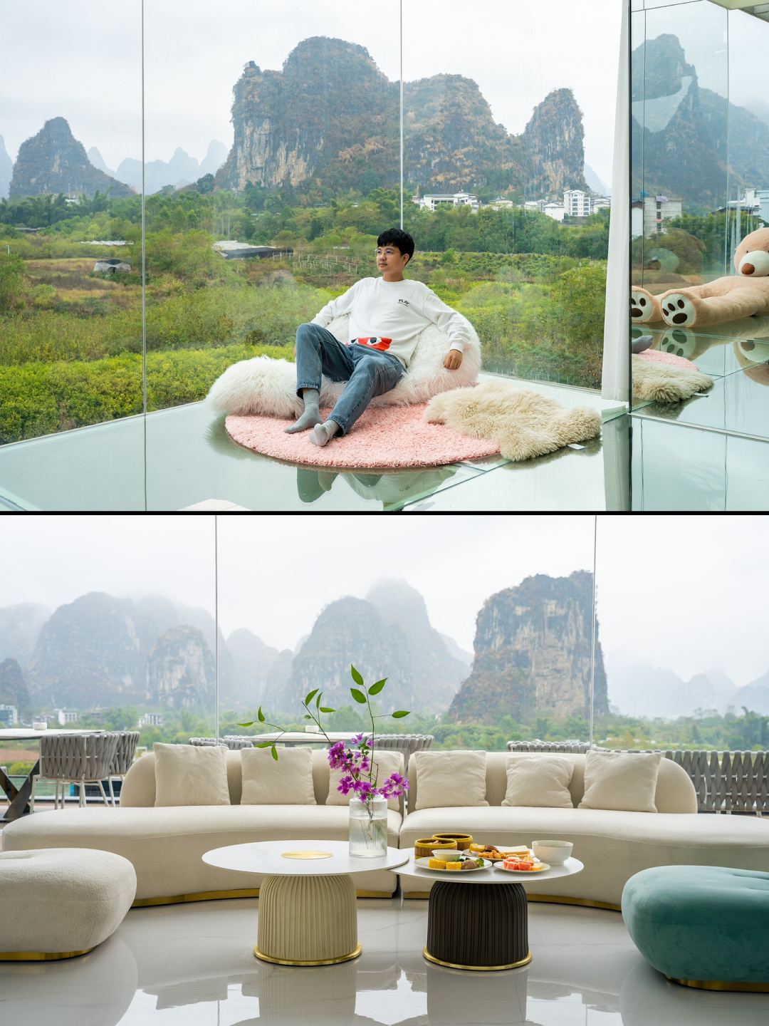 找一间1⃣️8⃣️0⃣️度的景观房、在房间里躺着欣赏这十里画廊的美景
