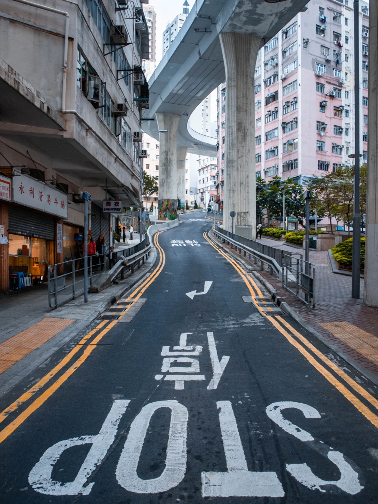 一条蜿蜒曲折的马路、路口有一个很大的STOP标语;就在🚇香港大学b2出口、如果有超广角会更加震撼