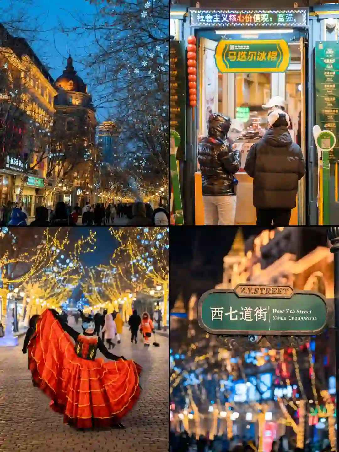 1⃣️上午去中华巴洛克风情街和老道外,这里是哈尔滨最具烟火气的地方、街边的小吃便宜又美味