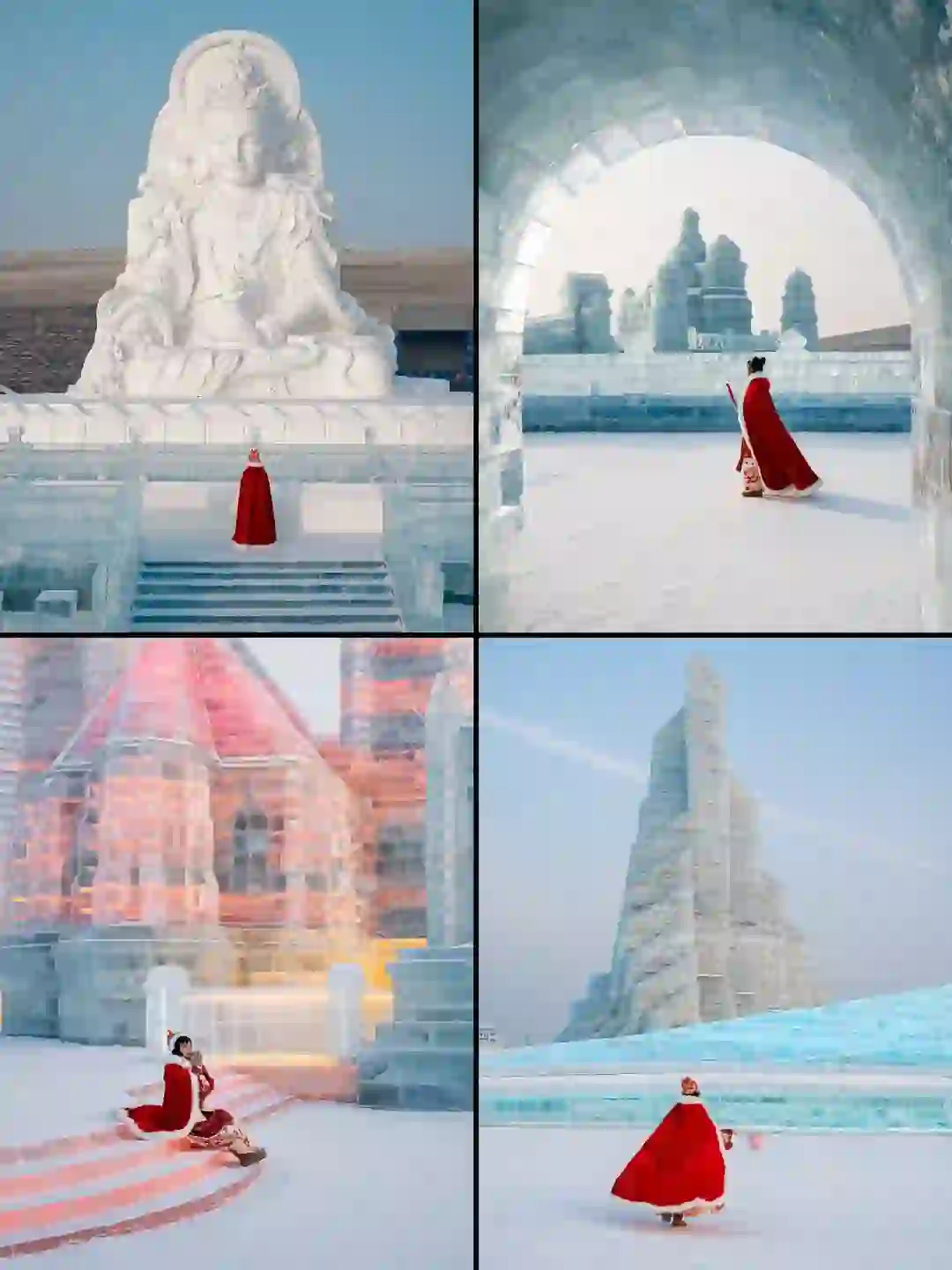 3⃣️下午去冰雪大世界、可以一直待到亮灯、既能看到白天的景观又能看夜景;除了有好看的冰雕城堡还有很多好玩的项目