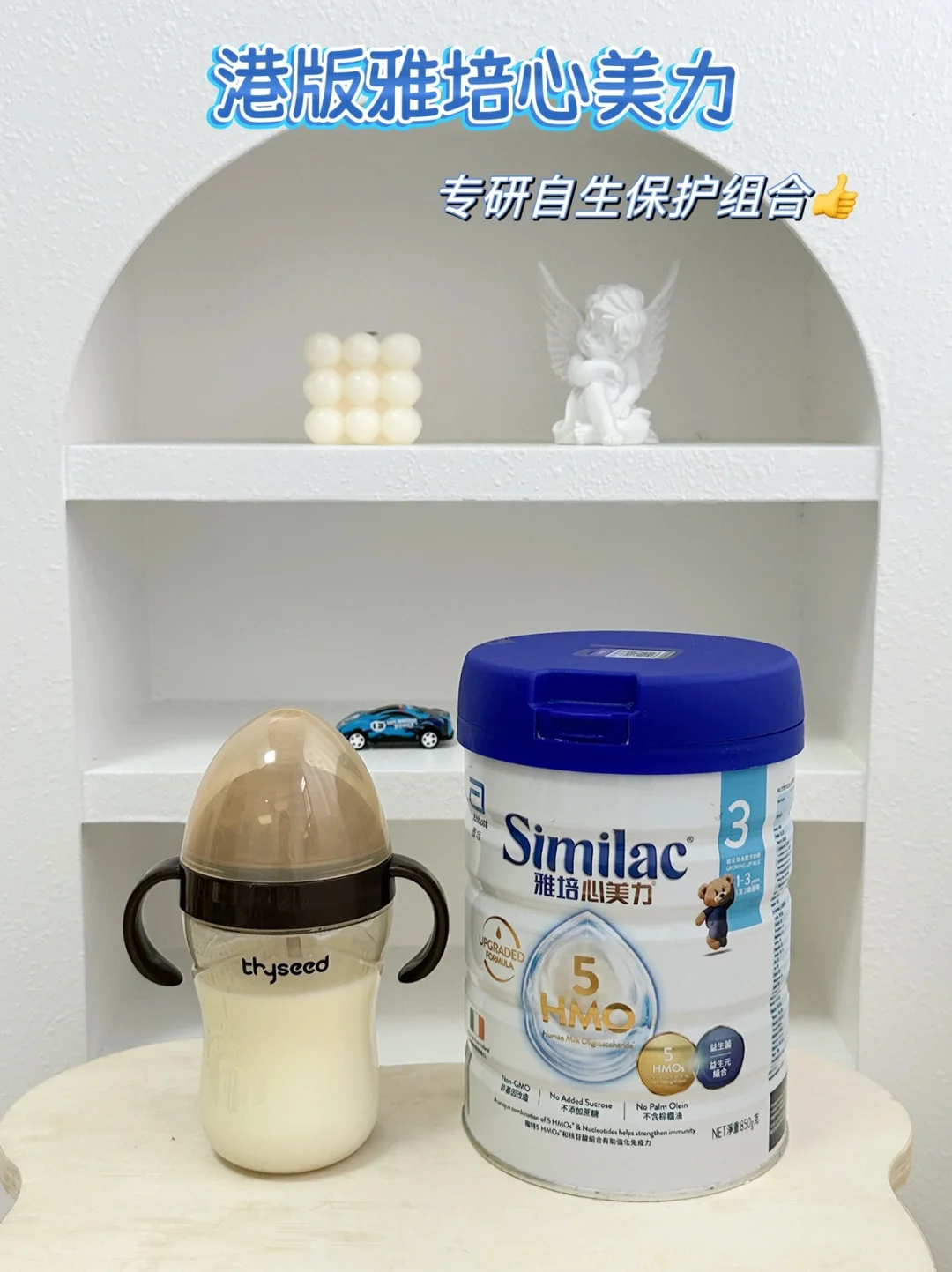 说到 HMO,就不得不提 “港版小奶盾”—— 港版雅培心美力奶粉。作为 “HMO 六边形战士”,它富含 5 种 HMO(2'-FL, 3-FL, 3'-SL, 6'-SL, LNT),含量高达180mg/100ml,是同类型产品里的天花板哦!精准模拟母乳低聚糖结构,助力宝宝搭建自御屏障。