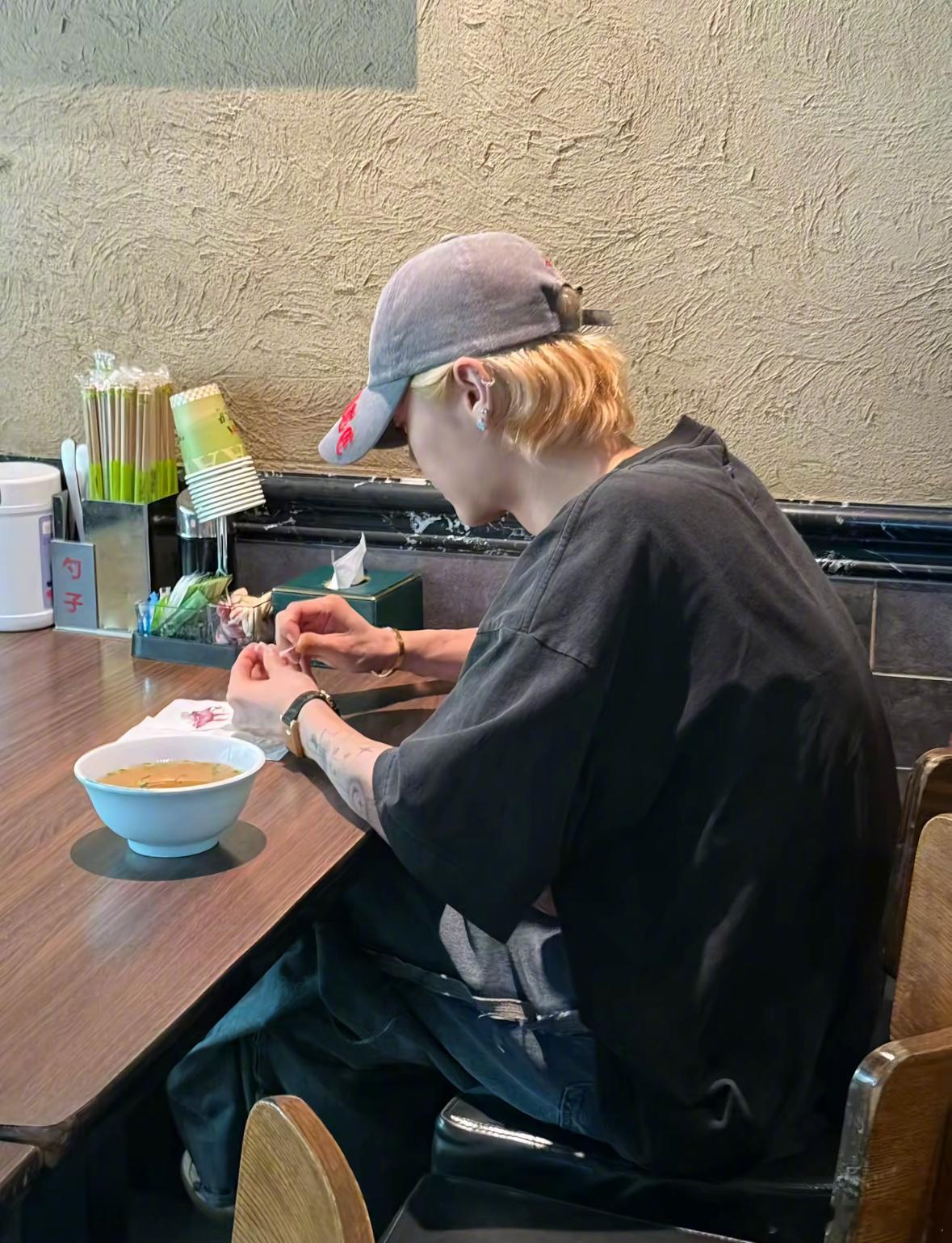 鹿晗上大众点评了,有路人拍照评论,拍到了鹿晗,这么轻松的就偶遇了!!!捞捞灰色帽子帅哥吃的什么面[捂嘴哭]