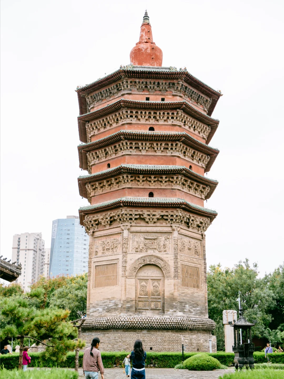 很显然,这个人起不出什么合适的标题了,但还很想分享当时拍下的照片。 文峰塔位于河南安阳古城内,始建于五代后周广顺二年(952年),因坐落于天宁寺内,原名天宁寺塔。又因位于旧彰德府文庙东北方,作为代表当地“文风”的象征,故又称文峰塔。塔高高38.65米,周长40米。塔身五层重檐,从下往上逐级增大,呈伞状形式,为国内外所罕见。塔刹属藏式喇嘛塔,为清代砌筑。 🌈国保第五批 开放时间:6:00-18:00 门票:20元/人