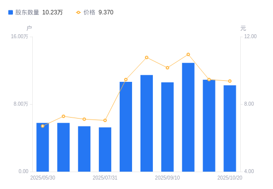 日期A股户数(户)流通A股户均持股数(股)户均持股市值(万元)2025-10-201023004392.164.122025-09-301090124121.733.902025-09-191289003485.783.822025-09-101059004242.854.312025-08-291145003924.174.232025-08-081065004218.943.992025-07-31525008558.436.032025-07-18538008351.635.942025-06-30578467767.485.652025-05-30578007773.665.21