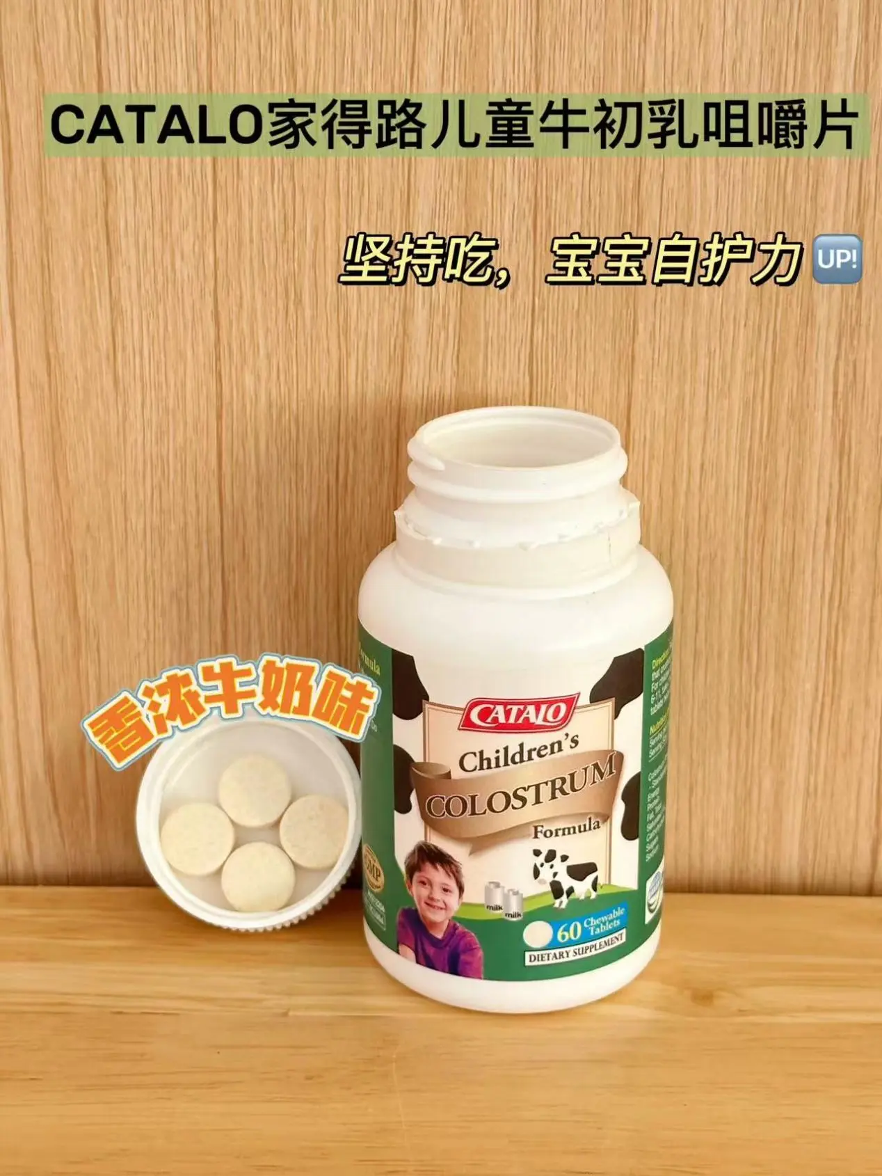 我给他吃的是✅家得路的儿童牛初乳咀嚼片