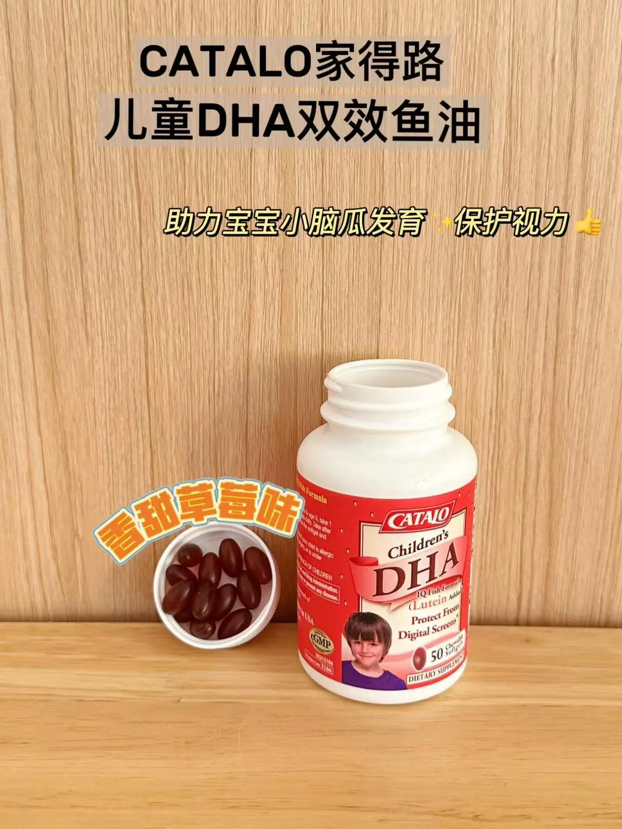 吃的是✅家得路的儿童DHA叶黄素双效鱼油