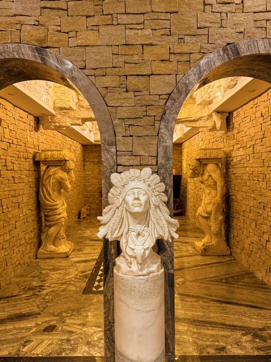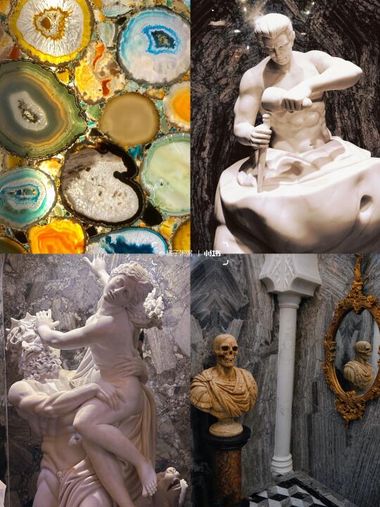 坐电梯到B2,你就会看到这座密室艺术馆,穿越到中世纪欧洲古堡,1500㎡空间里,800+艺术品、天然岩石画、19世纪的欧洲古董家具,在暗黄的光影下,更显复古、神秘、异域!!