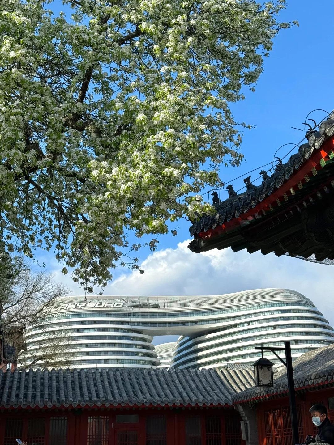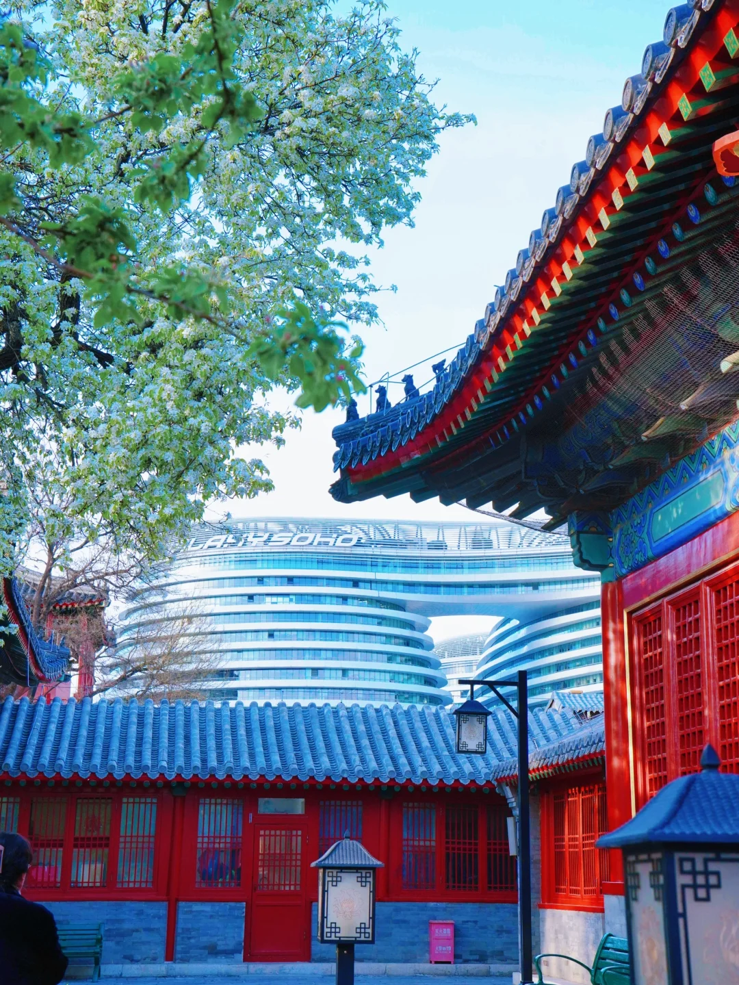 ❻大智殿东侧:可以拍飞檐斗拱、脊兽、梨花、后身银河soho,拍古今建筑同框