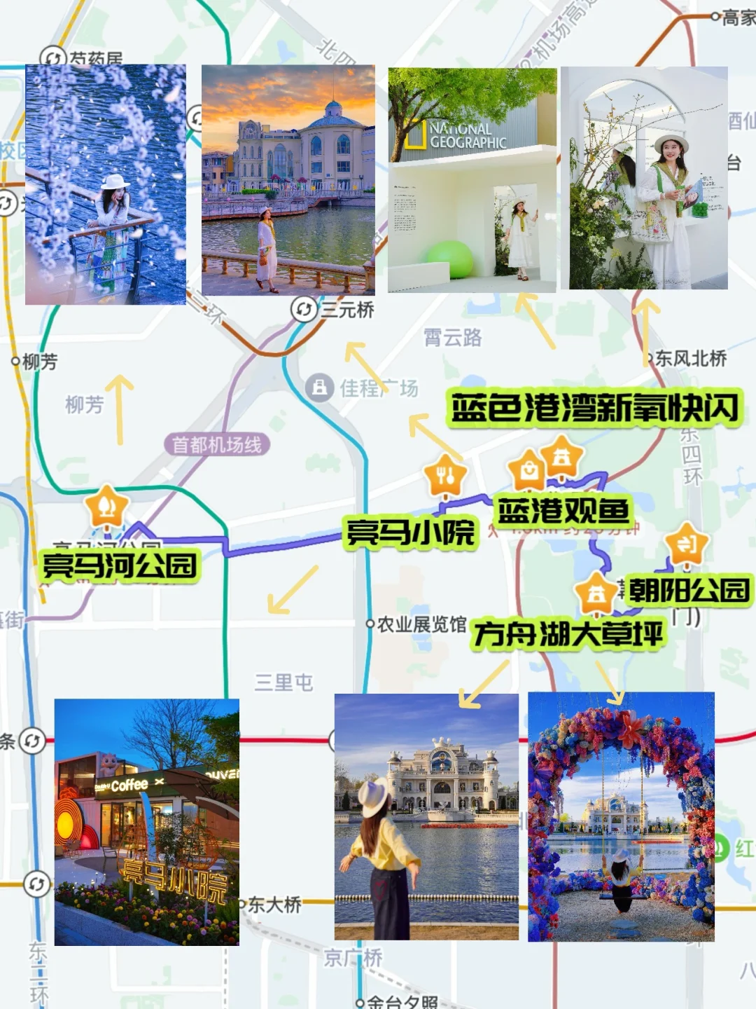 朝阳公园🕊️➠方舟湖大草坪🍃➠泡泡玛特城堡🫧➠蓝色港湾快闪➠蓝港观鱼🐟➠亮马小院➠亮马河公园