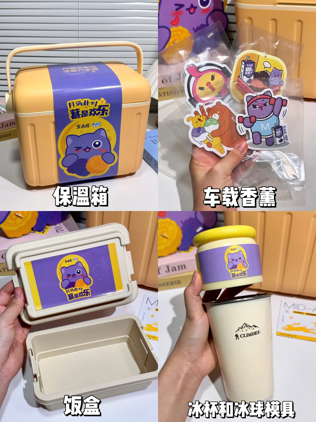 一开始被这次中秋限定的周边吸引了!礼盒里有:手提外出保温箱+自制灯笼🏮+冰球杯和野餐饭盒+5款车载香薰,太适合拎出去和朋友野餐了吧!!