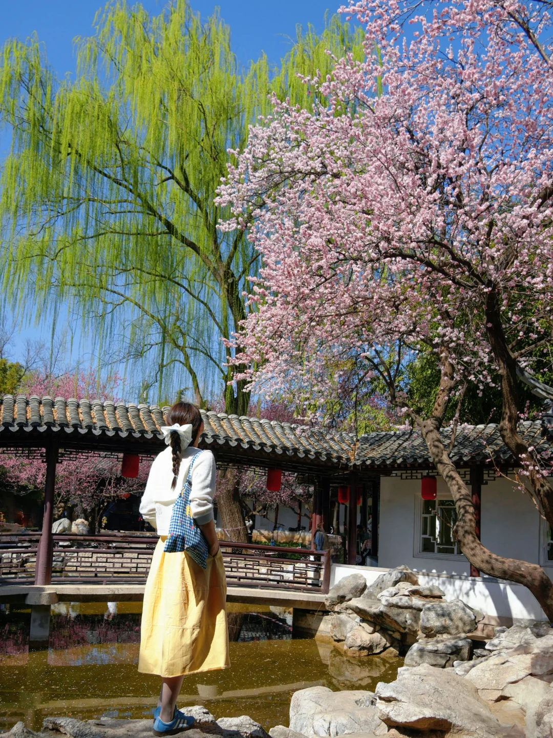 ❼ 沿岸有白玉兰、粉玉兰、白桃、粉桃、竹林…超多品类