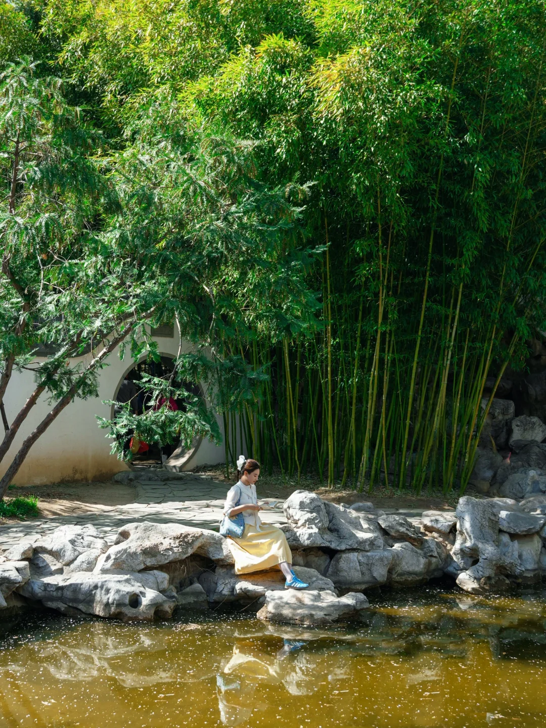 ❸ 水面、圆拱门、背景绿色竹林,很治愈(图6)