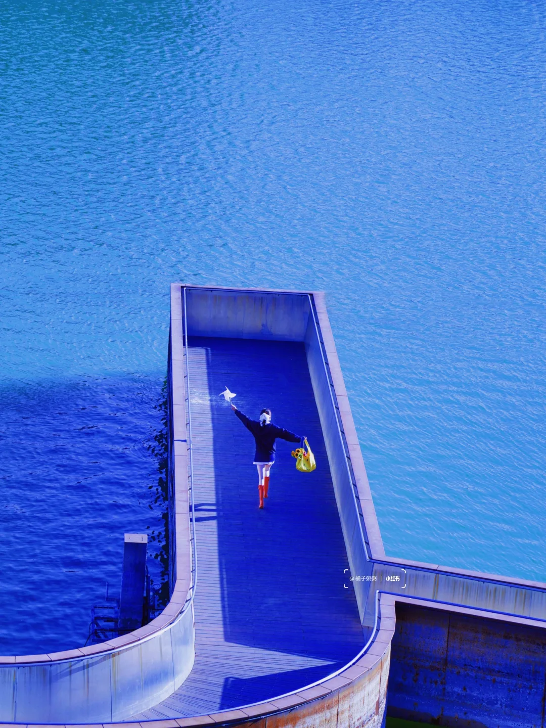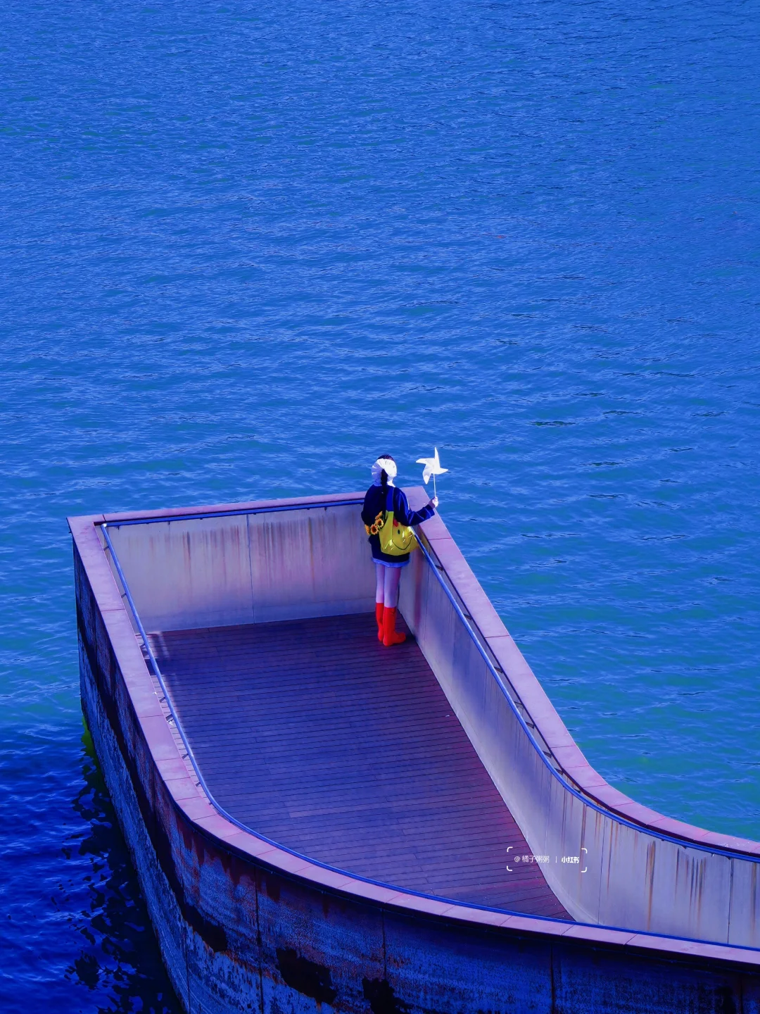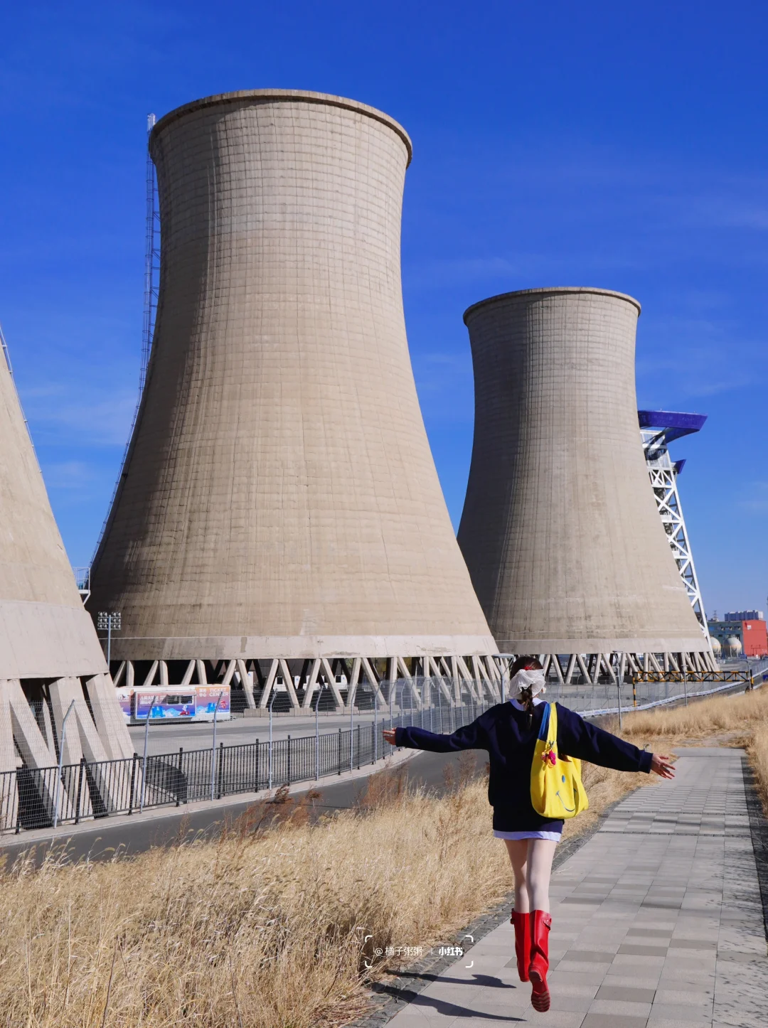 摄影师站在「六工汇」三层观景台,人物站在马路对面景观步道,get「首钢看’海’」既视感!