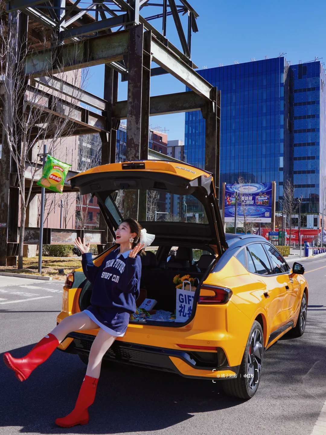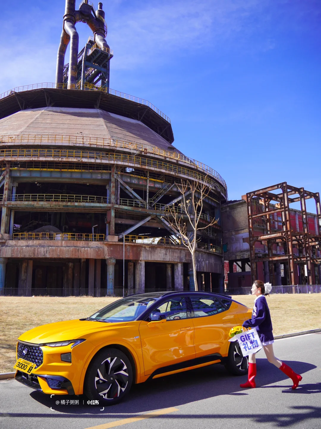 明黄色蒙迪欧运动版车车vs首钢工业风背景,流线型车身配工业废墟,直接拍出「车生照片」!逛累回车上切换躺平模式,1.1米超广域高清巨幅屏,B&O音响一开秒变私人影院🎞️!从市区→首钢园实测油耗7.2L,2.0T高功率发动机,大马力和低油耗一个都不能少![派对R]