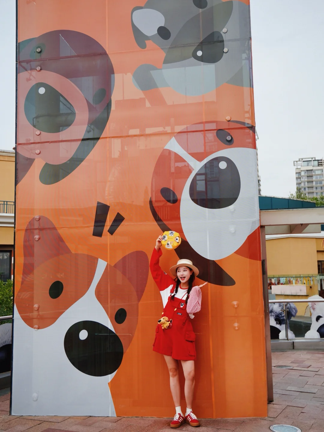 ❸ 门店对面的电梯外立面,超超超大型大头狗同框