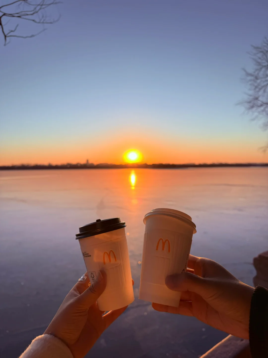 吃着麦麦新出的新品金菠萝鸡扒麦满分🍍、喝着鲜煮咖啡☕️、从未褪尽的清冷月光🌛,到太阳逐渐浮出湖面☀️,简直不要太治愈!!