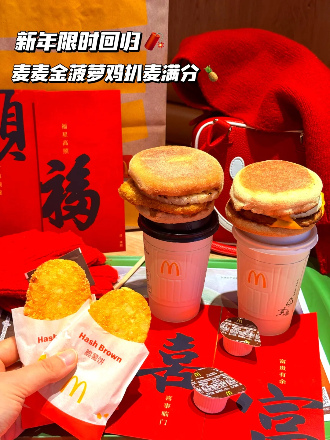 早上出门特意去麦麦点了早餐🍳,看到金菠萝鸡扒麦满分回归了!!新年满分upup![派对R]