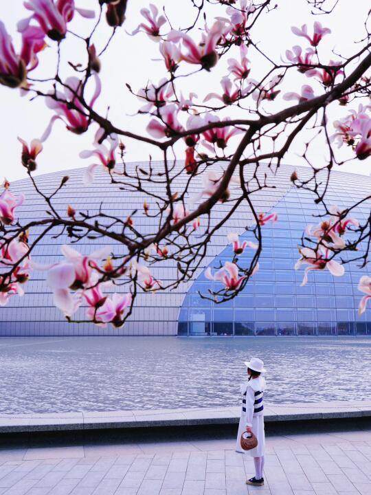 ❶ 大剧院东北角玉兰,和大剧院建筑同框