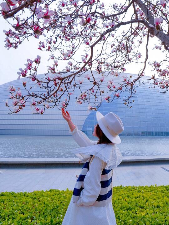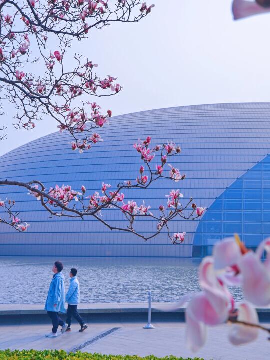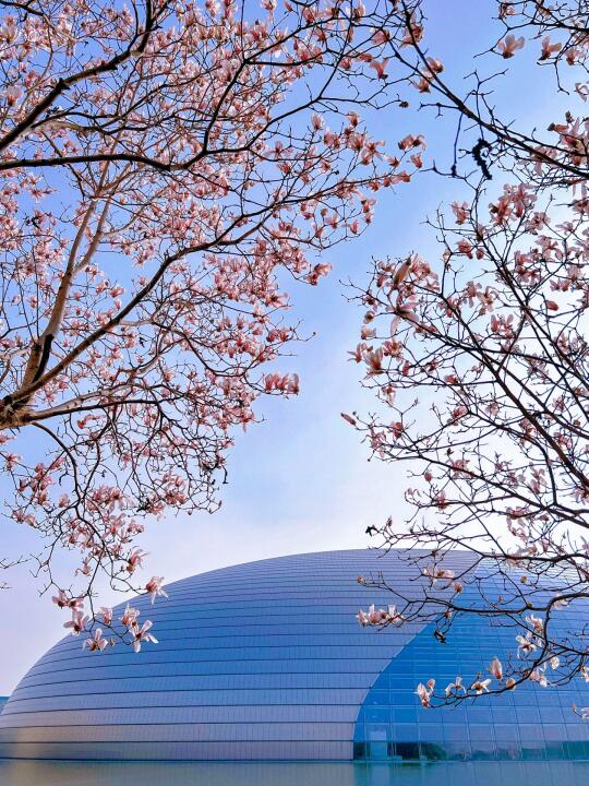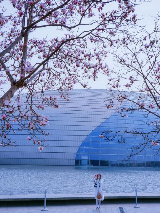 东北角的玉兰开的正旺🌸,能拍到大剧院和水面