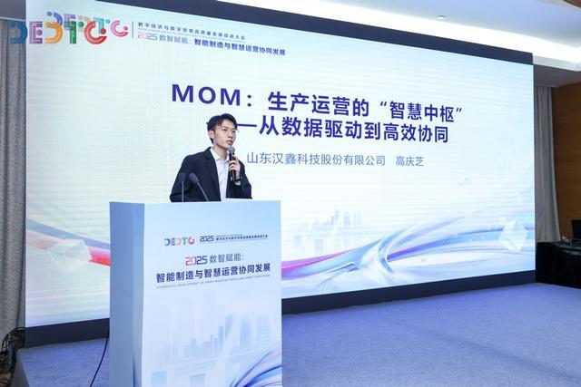 会议的核心亮点环节,汉鑫科技高庆芝登台进行《MOM:生产运营的“智慧中枢”——从数据驱动到高效协同》主题演讲,直指当前制造企业面临的“信息孤岛”“过程不透明”“决策滞后”三大核心痛点,宣讲了汉鑫自主研发的制造运营管理(MOM)平台。作为企业生产运营的“智慧中枢”,汉鑫MOM平台凭借三大核心能力引领行业突破: