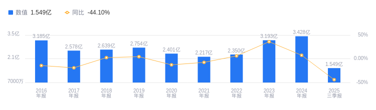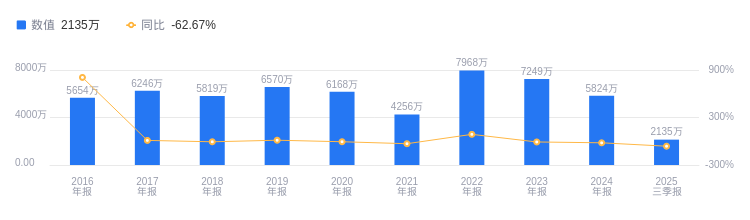 2025年三季度,万向德农营业收入1.55亿元,在行业10家公司中排名第8。行业第一名农发种业营收36.77亿元,第二名隆平高科营收28.41亿元,行业平均数为11.79亿元,中位数为6.52亿元。当期净利润2134.99万元,行业排名4/10,行业第一名敦煌种业净利润1.13亿元,第二名农发种业净利润8751.19万元,行业平均数为-9464.24万元,行业中位数为645.87万元。