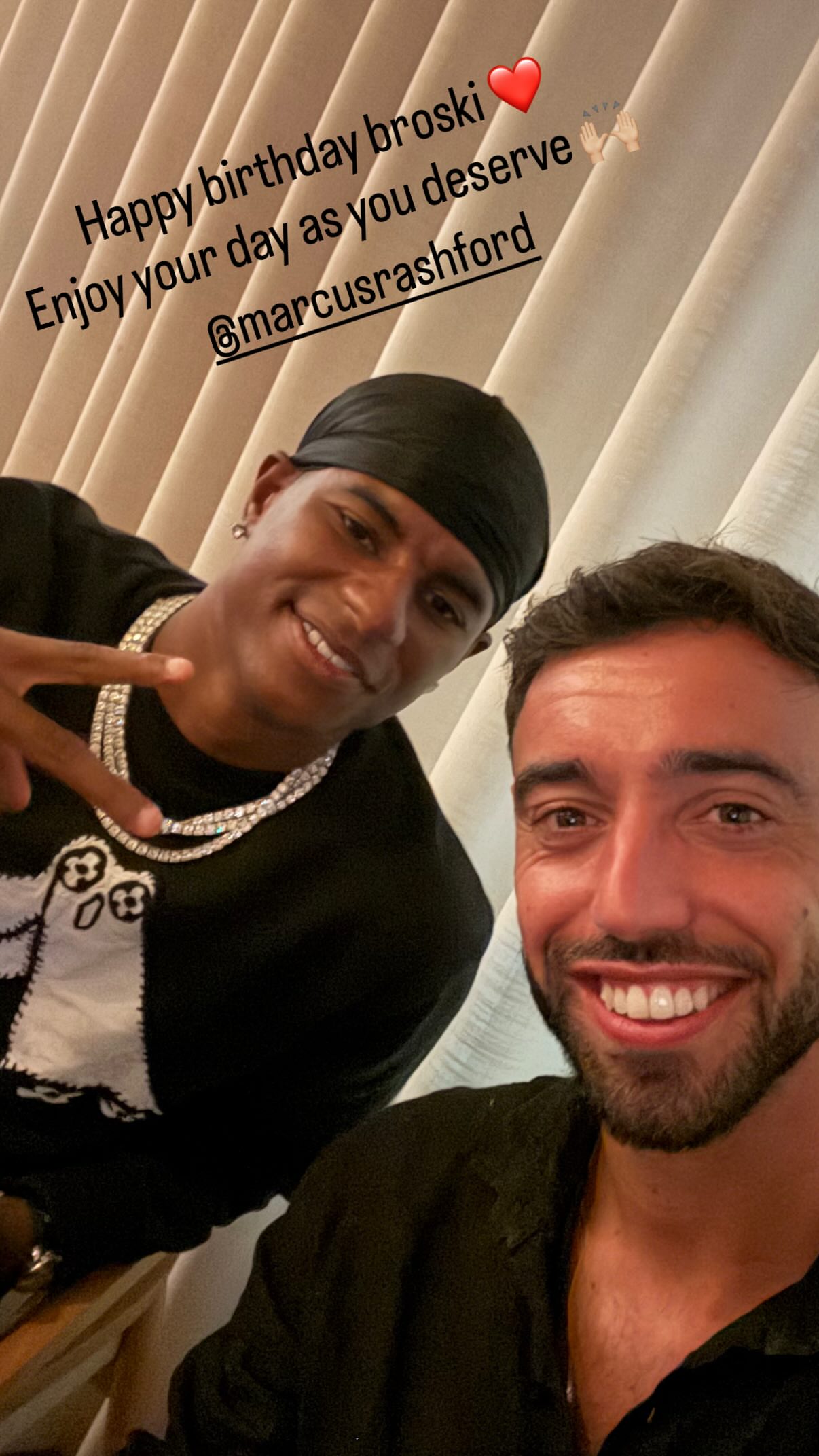 生日之际,他的前队友曼联队长布鲁诺-费尔南德斯更新社媒晒出两人合影,为他送上祝福。