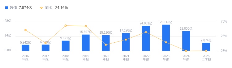 2025年三季度,科大国创营业收入为7.87亿元,在行业102家公司中排名第33,低于行业平均数17.12亿元,与行业第一名上海钢联的573.18亿元、第二名德赛西威的223.37亿元差距较大。净利润为-1.47亿元,行业排名94/102,远低于行业平均数2643.13万元,行业第一名德赛西威达18.05亿元,第二名同花顺为12.06亿元。