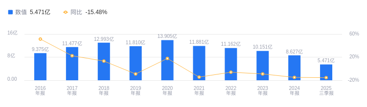 2025年三季度,银之杰营业收入为5.47亿元,行业排名43/102,远低于行业第一名上海钢联的573.18亿元和第二名德赛西威的223.37亿元,行业平均数为17.12亿元,中位数为4.19亿元。净利润为-6563.36万元,行业排名80/102,与第一名德赛西威的18.05亿元和第二名同花顺的12.06亿元差距较大,行业平均数为2643.13万元,中位数为-719.92万元。