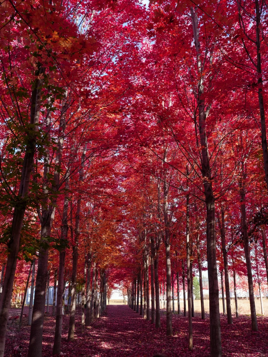 成排成排的红枫,游客分散,不用躲人群,随手拍大片!!