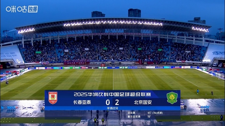 半场-亚泰0-2国安塞鸟弑旧主法比奥失点后命中,卡米洛恶犯染黄
