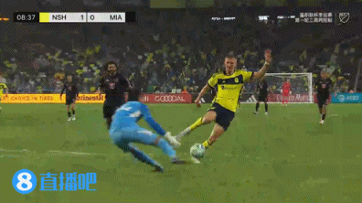 迈阿密客场2球落后!第45分钟,纳什维尔的角球开出,鲍尔门前抓住机会扫射入网,纳什维尔2-0迈阿密国际!↓
