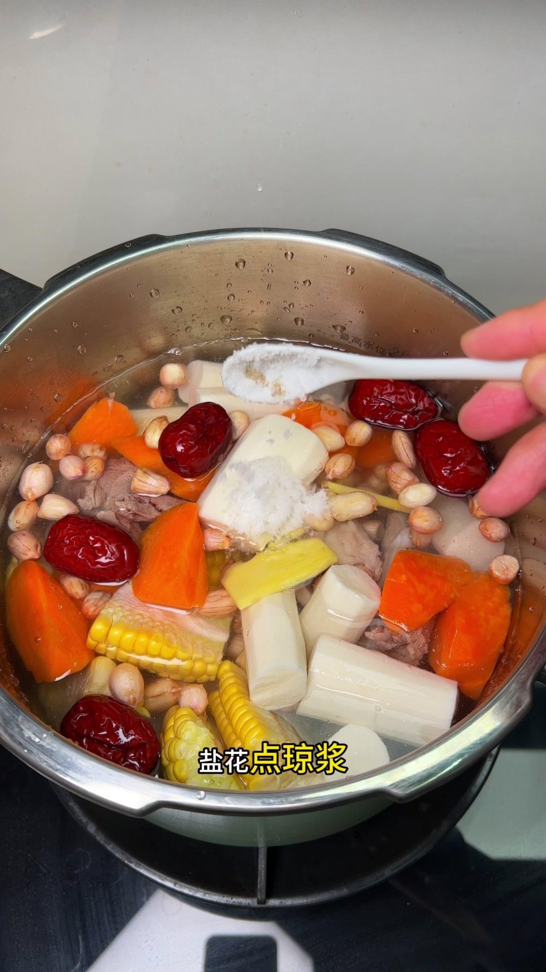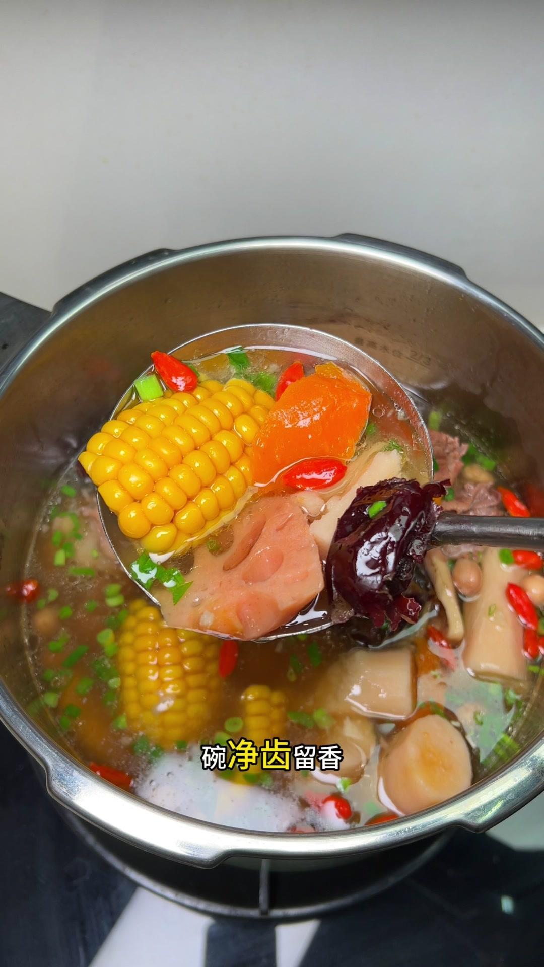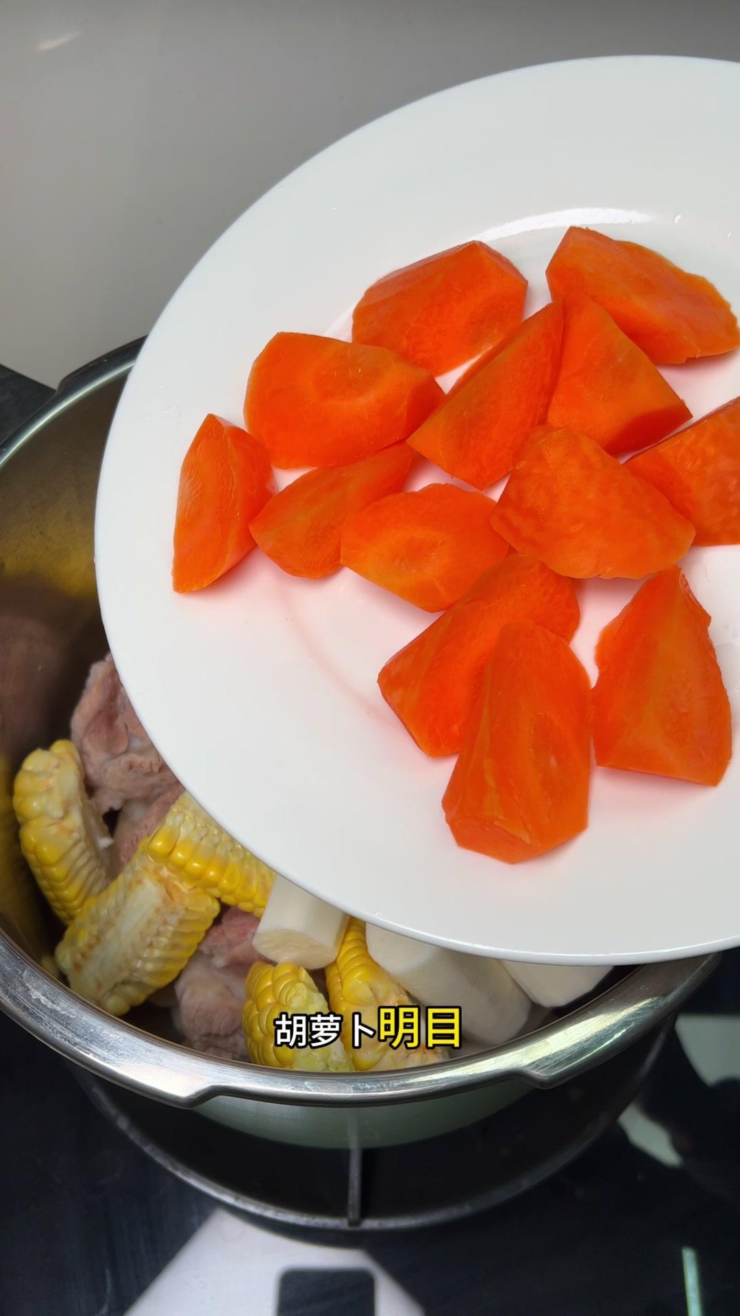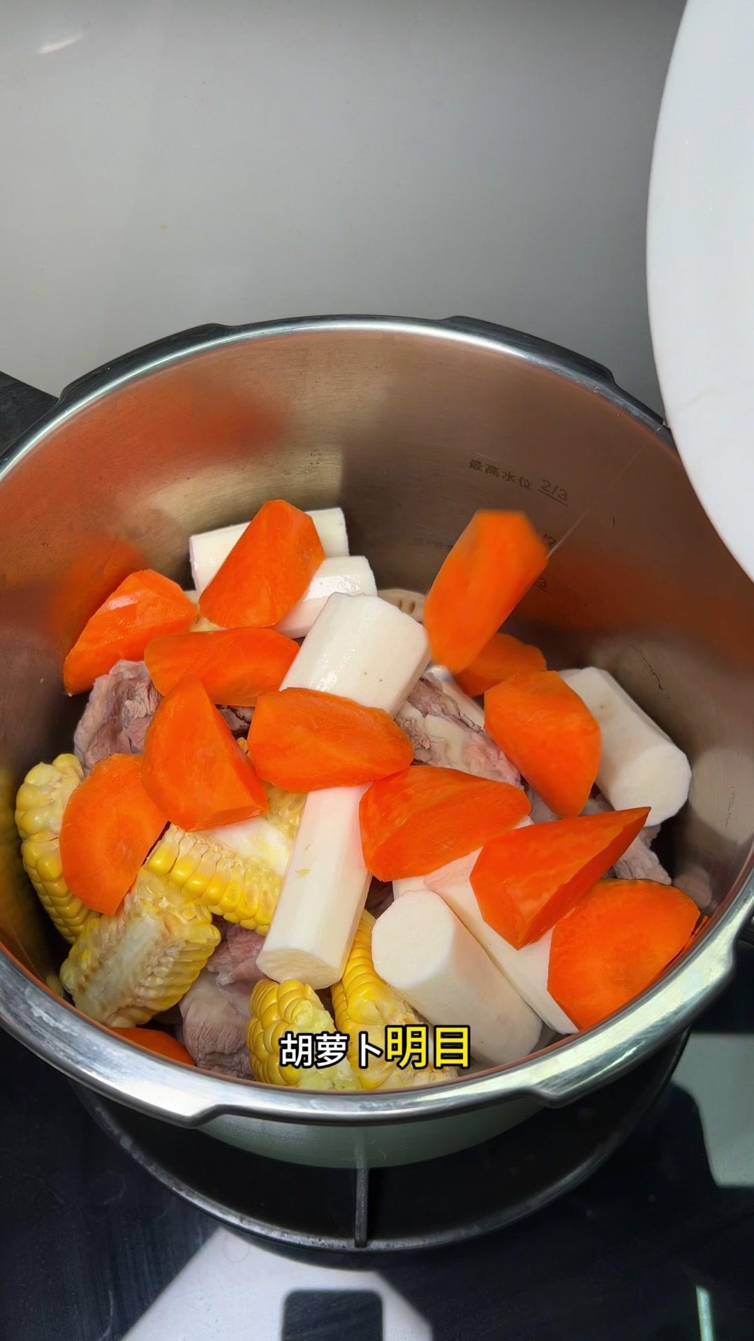 🍲大厨教你一招,汤鲜味美营养翻倍!这道山药玉米排骨汤,食材搭配堪称完美,喝完胃里暖乎乎的超舒服。 📝材料我选了排骨、山药、玉米、胡萝卜,还有花生和红枣,都是好食材。生姜是去腥关键,盐和葱花最后放调味增香。 ✨做法其实很简单:先把排骨焯水去血沫,然后和所有食材一起放进锅里,加足量清水,大火煮开后转小火慢炖。记得要多炖一会儿,让营养充分融入汤里,这样肉才会烂,汤才够醇厚。 等汤熬到奶白,撒上葱花就能喝啦!喝一口,肉嫩汤鲜,每个食材都吸收了彼此的香味,营养也都在汤里了,秋冬喝太合适了~