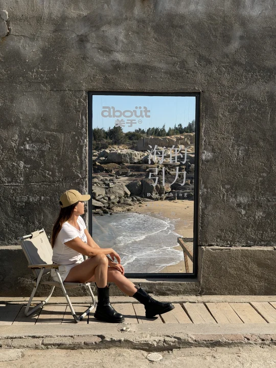 这家店离西街约四十分钟车程,180度海景,简约工业风设计,户外区域做了几面废弃的墙体,大片的落地窗很像济州岛的海边,周边还有玉沙湾公园和渔船港湾。就是海风太大,头发吹得乱飞。下午有渔民出滩卖海鲜,价格很便宜,也有加工店可以烹饪。