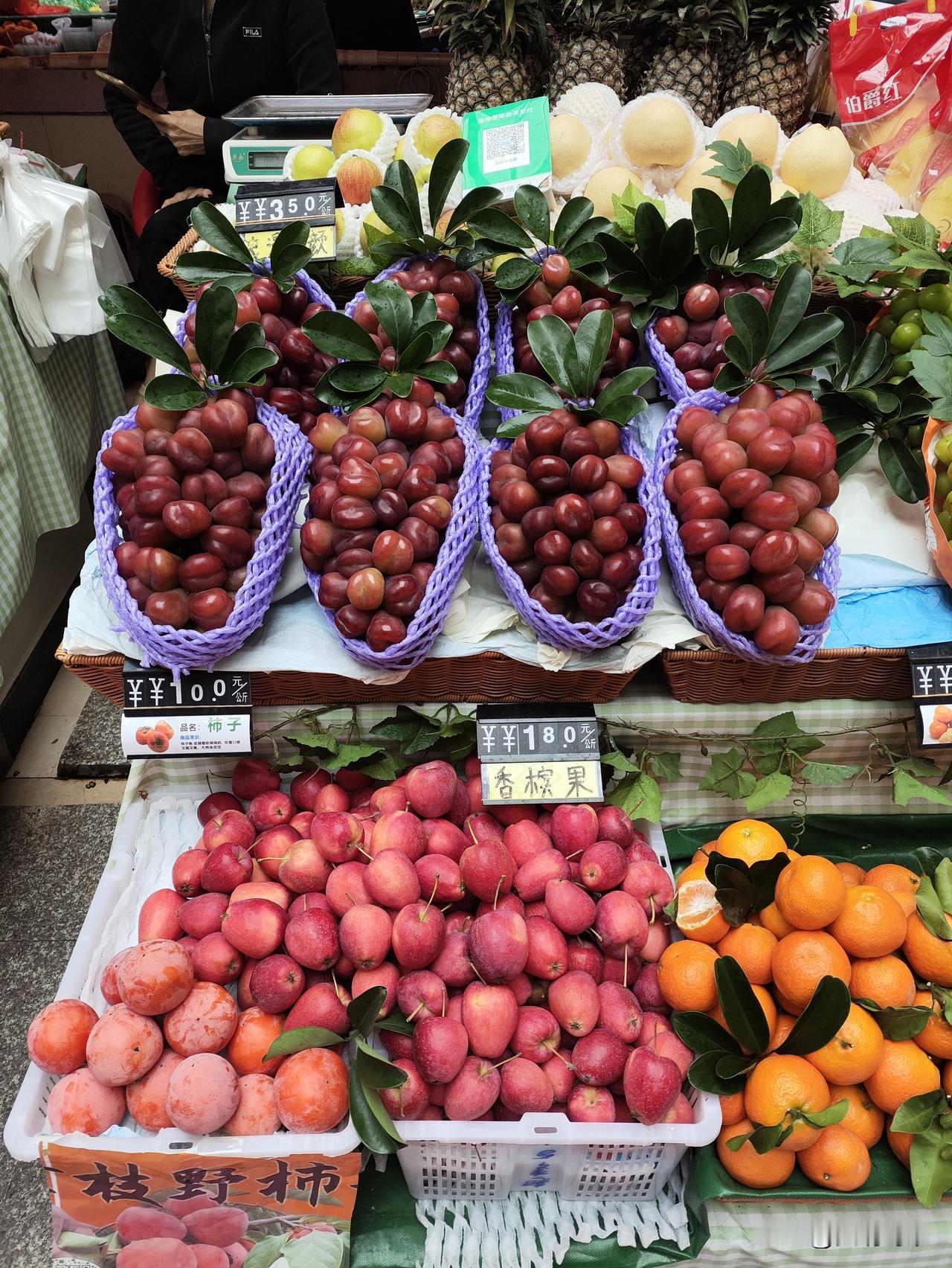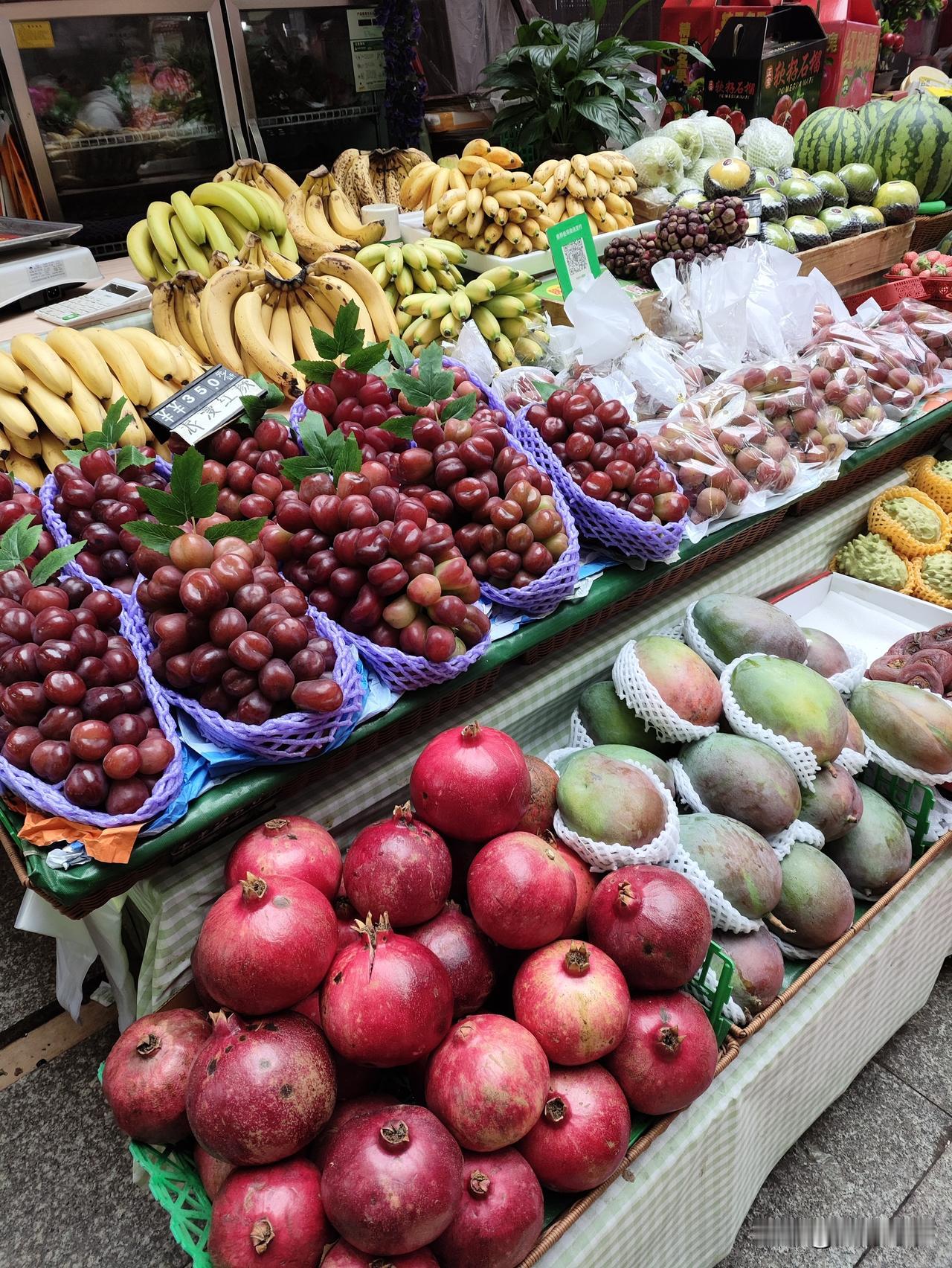 11月3日,云南弥勒,今日阴雨绵绵,体感稍稍阴冷,温度在10度左右。 下午出去逛街,原本以为人会很少,却不料比往常周末都要多,大家都是冒雨在逛街购物,令人费解?难道是要州庆了吗?我查得红河州州庆放假是11月15日到的18日。还有10多天,可能是提前来采买过节的物品。 来到最著名的佛城商都,来到了最著名那个网红打卡点,就是那个水果摊了,那里的水果一如既往的新鲜亮丽,品种丰富!一些葡萄石榴都非常大,还有一些没见过的水果。购物的人也不少,并且发现商场里多了一处新设置的休息区。这个设置真的挺人性化的,这个商场很大,还有楼上好几层,逛一圈真的挺累的,累了在这儿休息休息真不错,休息区墙上有几个字: “弥勒旅游,最后一站” 彩云之南弥勒 弥勒之行 佛都商城