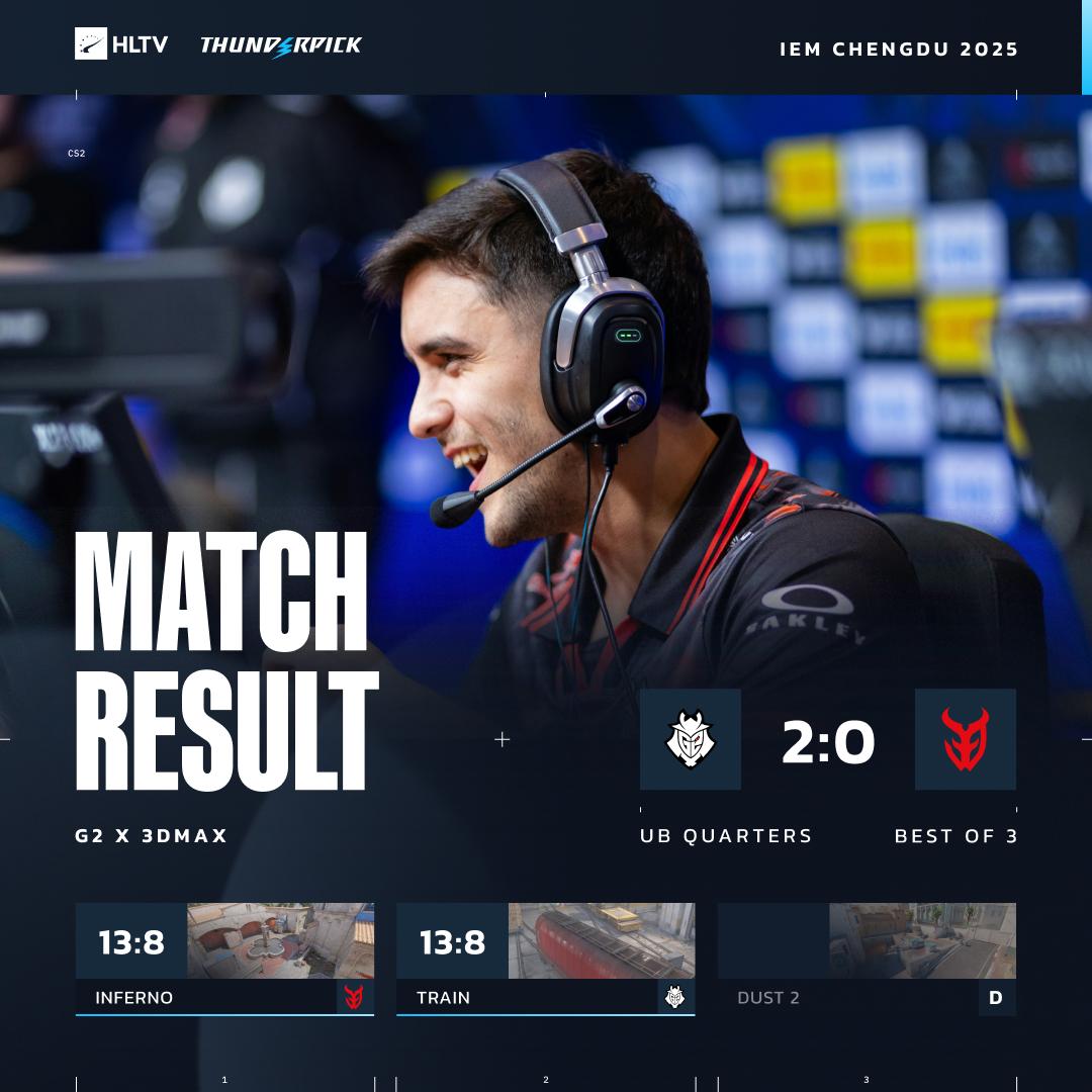 虎扑11月03日讯IEM成都站小组赛B组首轮:G2对阵3DMAX
