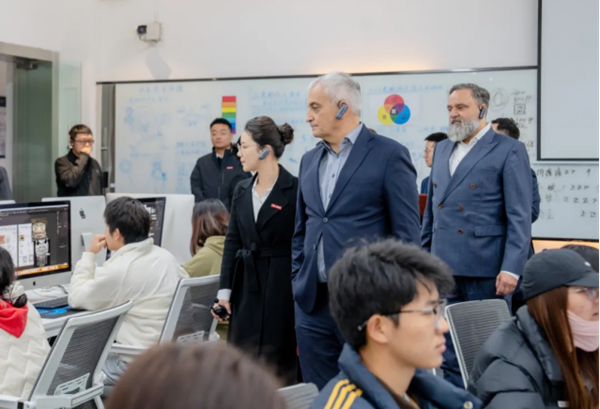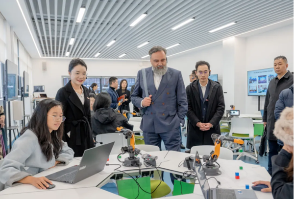 访问期间,德方代表一行实地参观了云南工商学院的校园环境、实训基地与智慧教室,深入了解学校“以学生为中心”的办学理念与产教融合实践。德方代表对学校先进的硬件设施、学生参与的真实企业项目表现出浓厚兴趣,多次驻足与师生现场交流,并对学校的实训条件与育人成果给予了高度关注。
