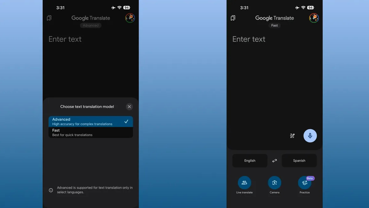 [谷歌翻译加入文本翻译AI模型,可选择快速回应或进阶模式]谷歌翻译App正测试新AI文本翻译模型,新增快速回应和进阶模式,提升翻译准确性。目前iOS端部分用户可体验,网页版和Android版需等待。实时翻译和图片翻译暂不支持新模型。#谷歌翻译##AI翻译#