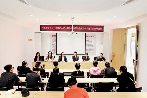 承德中院民一庭走进双桥区中华路街道山庄社区,就老旧小区加装电梯引发民事纠纷的司法建议落实情况进行回访座谈。赵宇摄