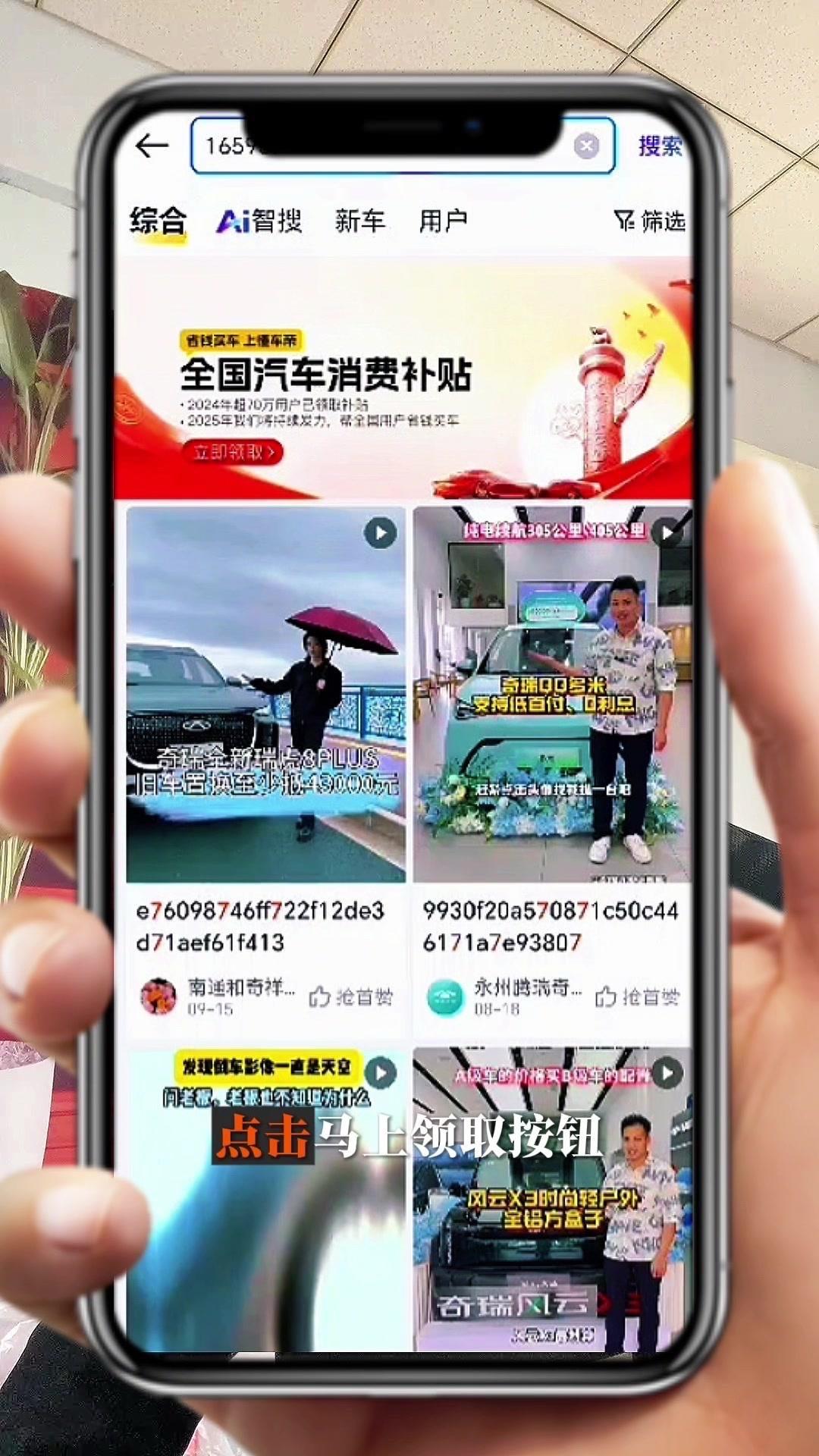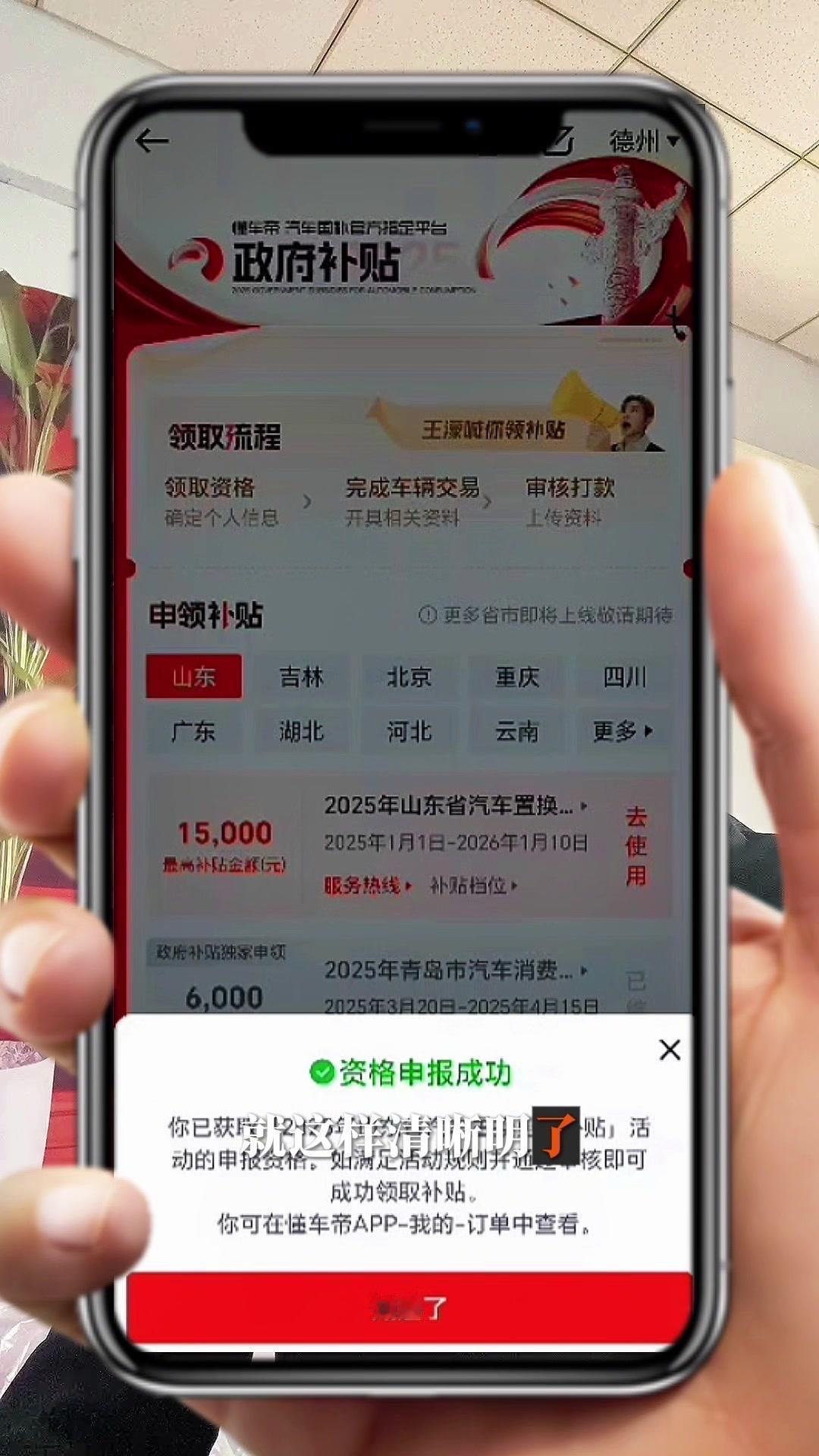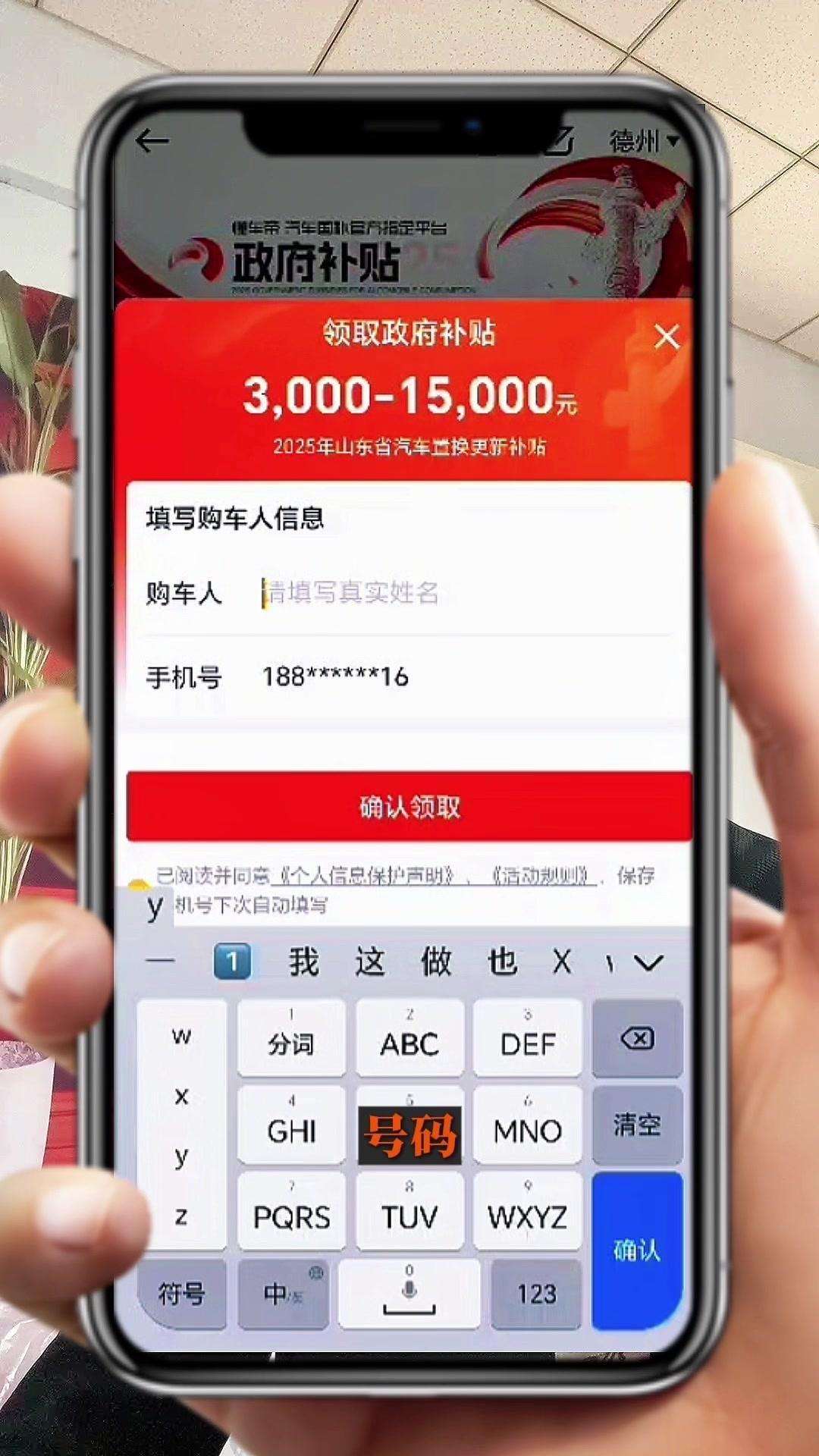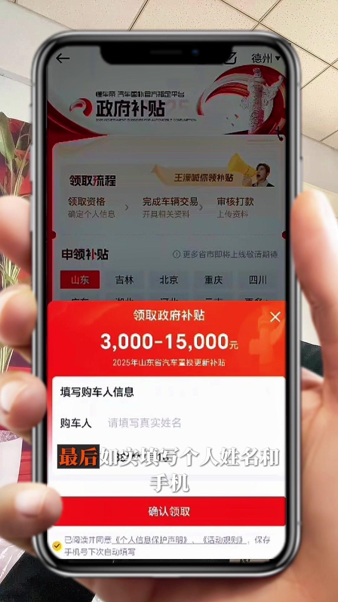 先启动懂车帝APP,在首页搜索框输入165957,点击搜索图标。在搜索结果中找到全国汽车消费补贴入口,点击马上领取按钮。 然后选择当前所在省份,点击该省份对应的申领入口,进入领取页面后如实填写个人姓名和手机号码,最后点击确认申领。整个流程简单清晰。