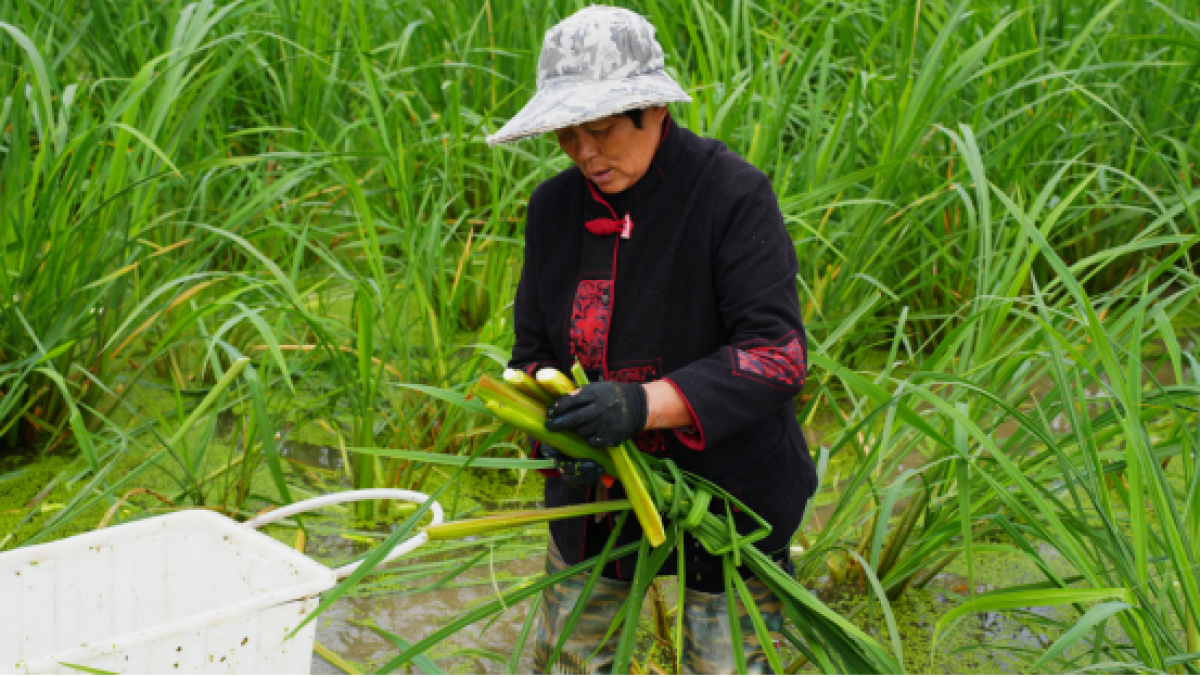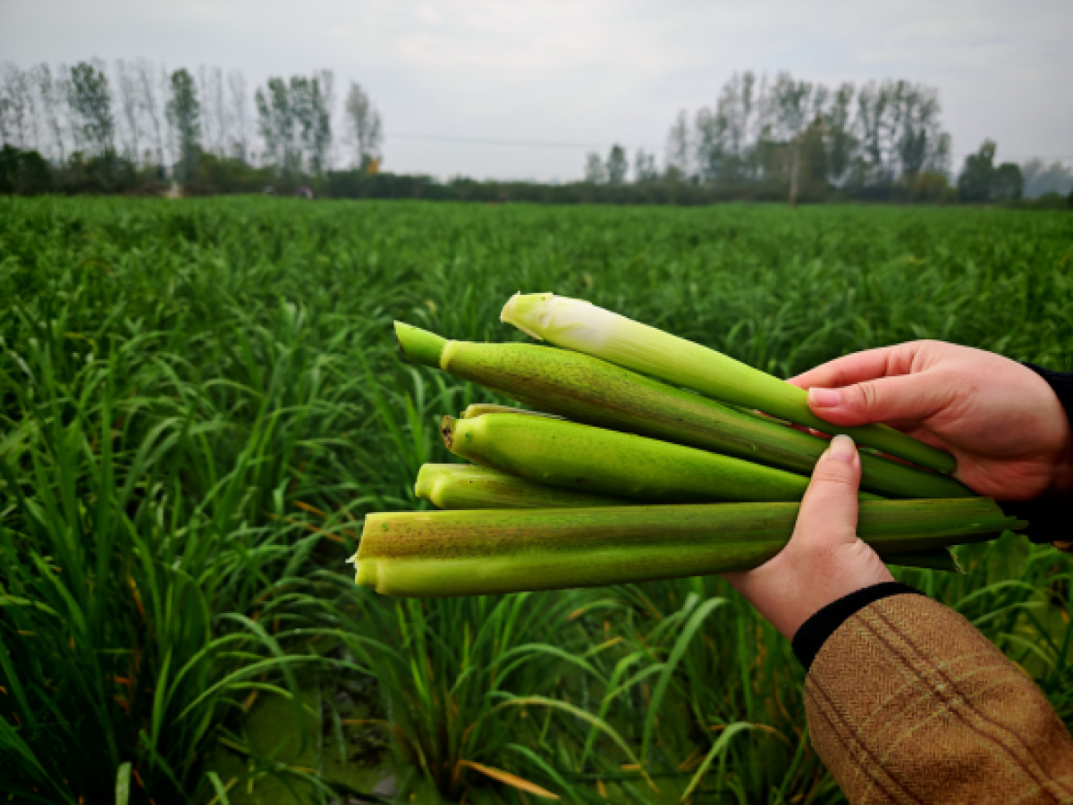 “今年茭白长势特别好,你看这茭白,个头饱满、肉质鲜嫩,都是按标准化技术种出来的,在市场特别受欢迎!”正在田间采收的村民一边展示刚收割的茭白,一边笑着说。她手里的茭白外壳翠绿鲜亮,剥开后内里洁白嫩脆,凑近还能闻到淡淡的清香。