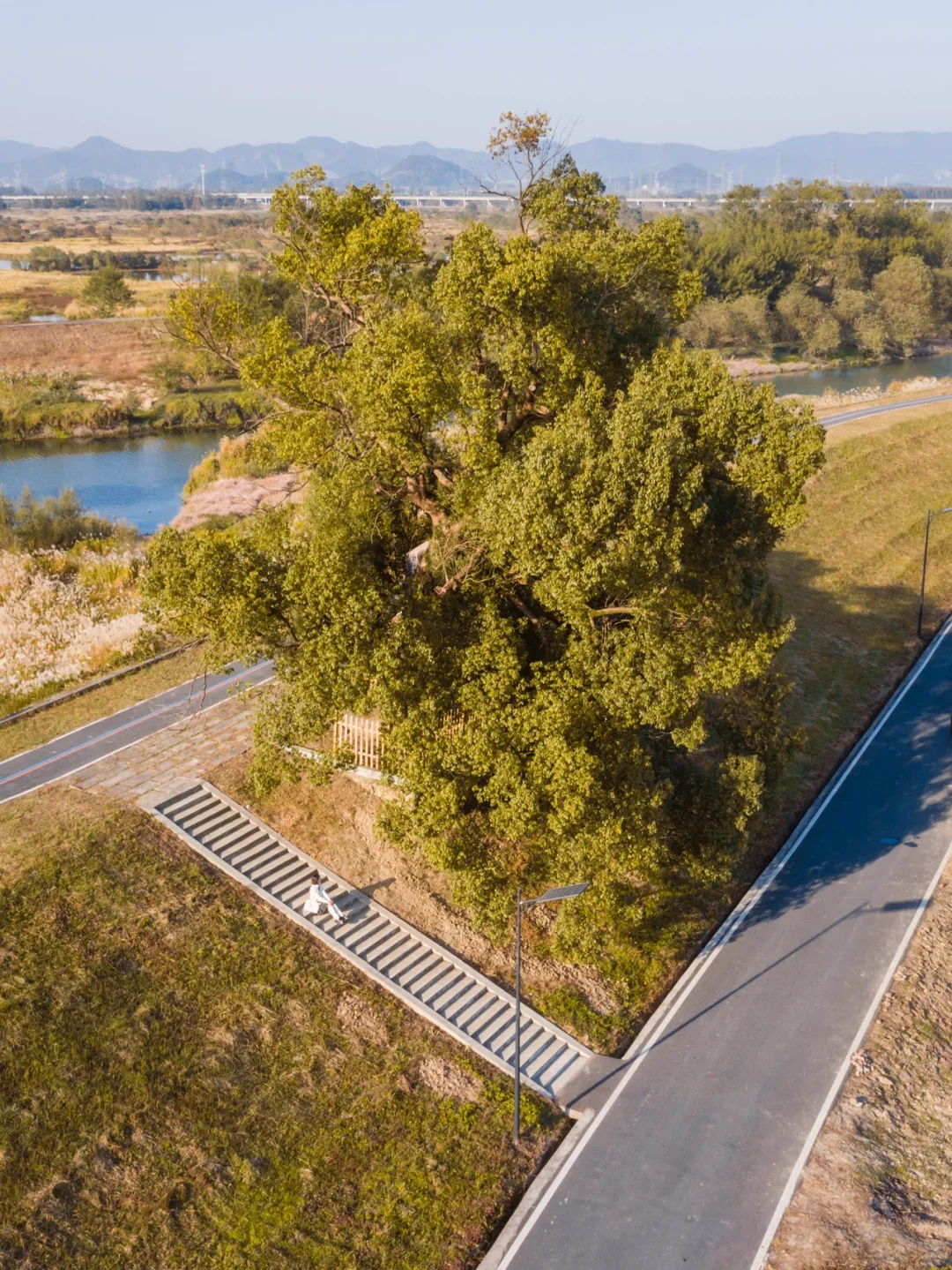 在去北湖草荡的途中发现这片绝美芦苇荡,这里没有游客,只有好看的S湾、千年古树,大片的芦苇荡