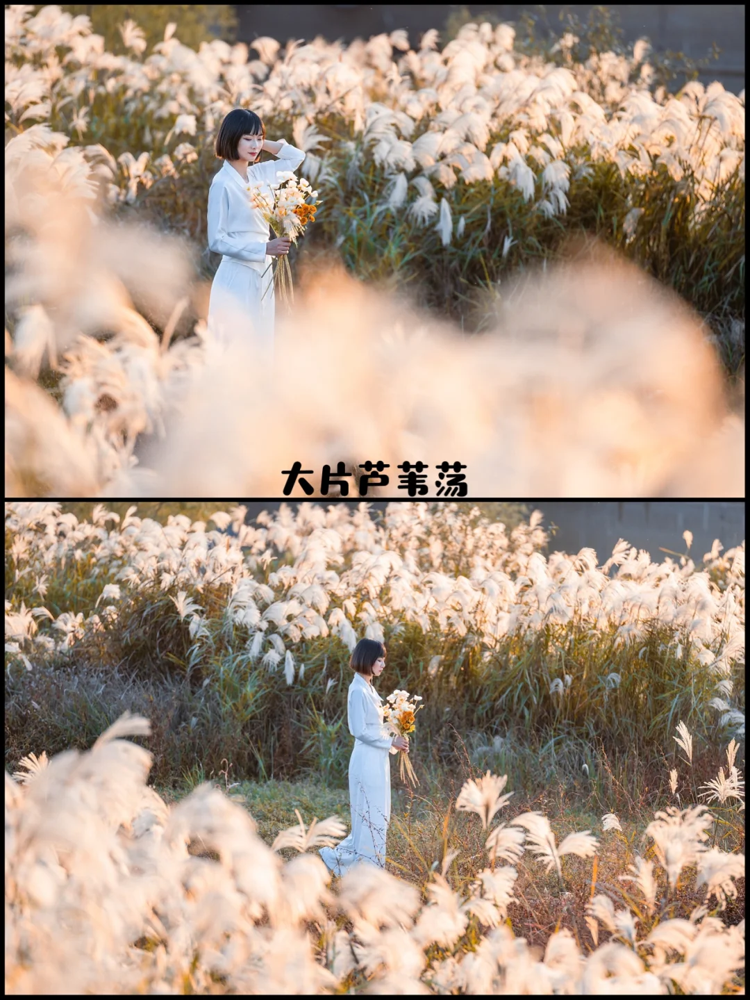 4⃣️人物拍摄的时候利用好日落前的30分钟,逆光下芦花和人物都是闪闪发光的
