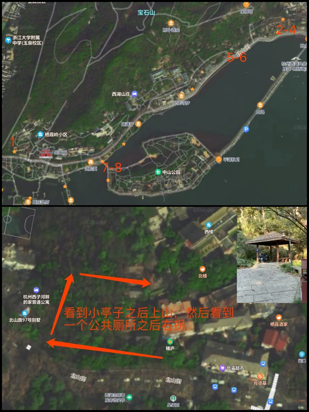 图1位置比较难找,需要定位“穗庐”之后往西走看到一个小亭子之后上山,然后看到一个公共厕所之后右拐