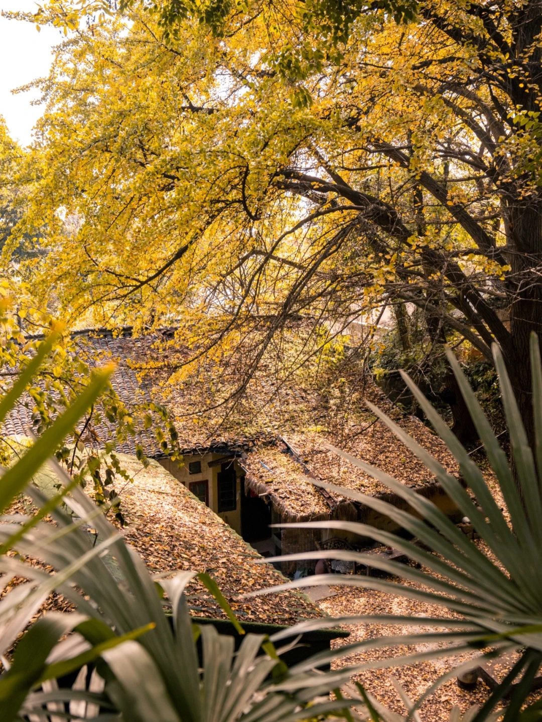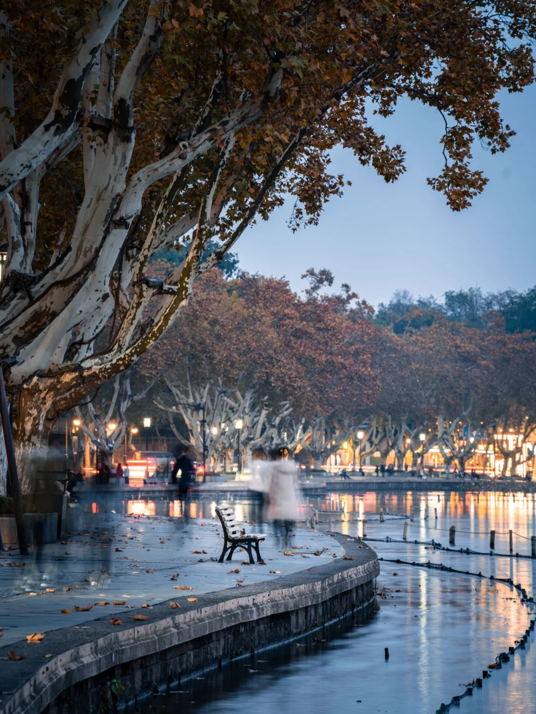 秋日的午后,梧桐树的影子被拉长,漫步北山街,随处找一个长椅和最爱的人一起静静看落日