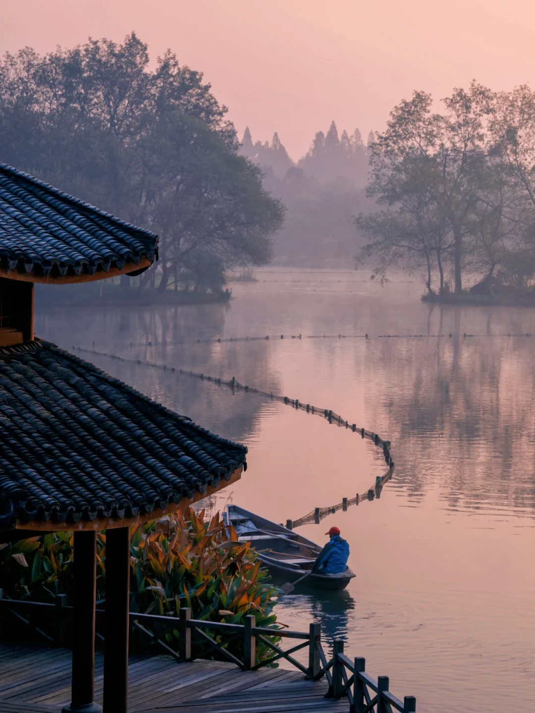 1⃣️日出日落天空都是橙红色或者是粉紫色,特别是如果碰到维纳丝带,湖面都是粉色特别好看,所以调色基调也是梦幻一点的粉紫色