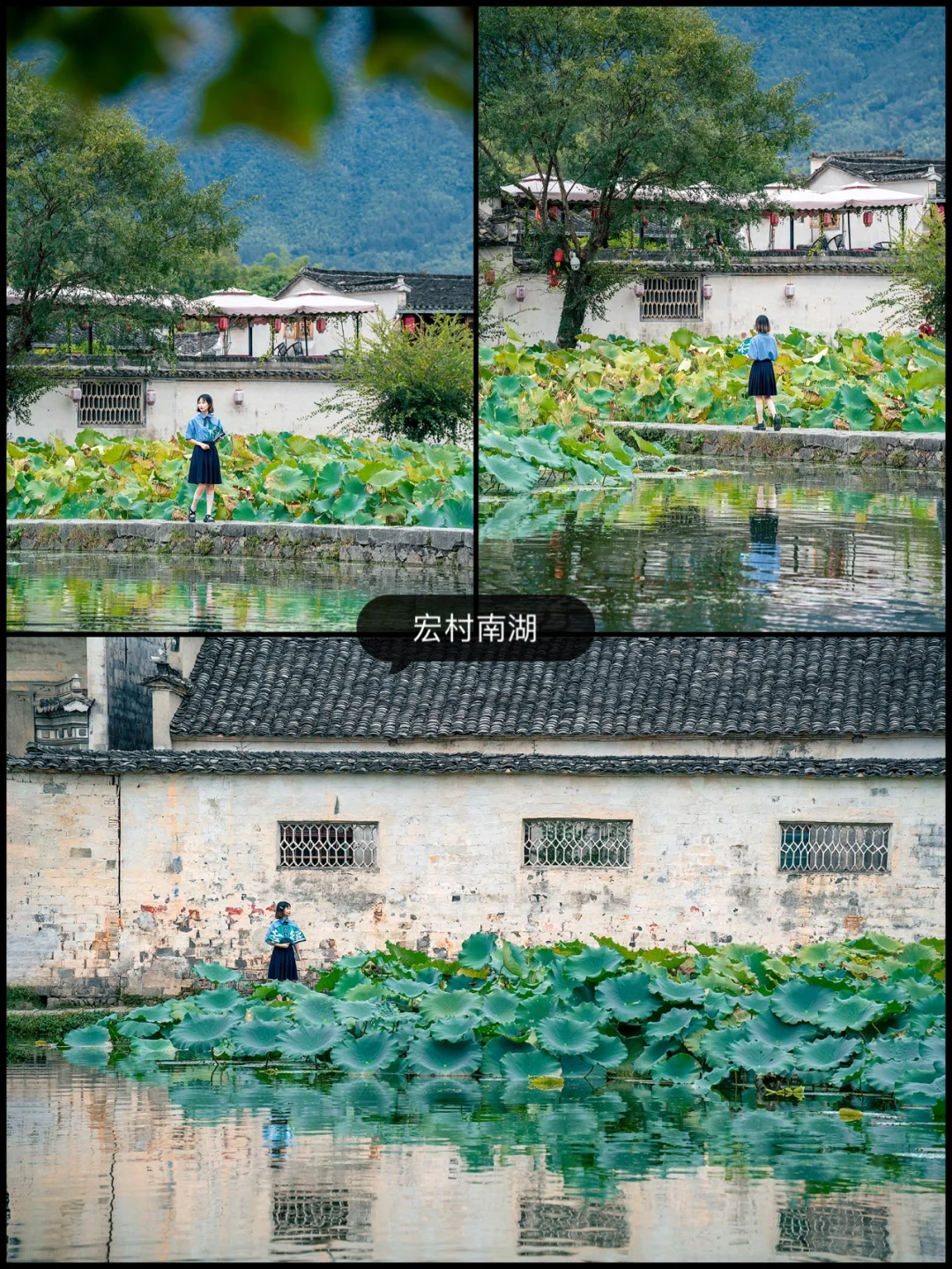1⃣️第一天去宏村古镇游玩,村口的南湖,村里的月沼还有各种小巷子拍照都很出片(如图2-3)