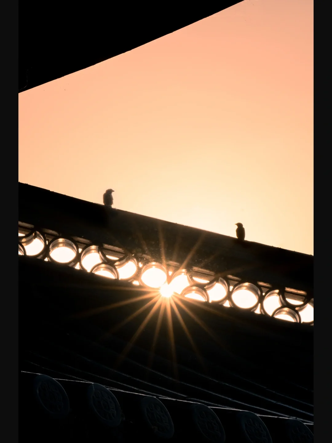 4⃣️亭子上的小鸟抓拍也很有意思,相机小光圈拍出太阳的星芒(图6)
