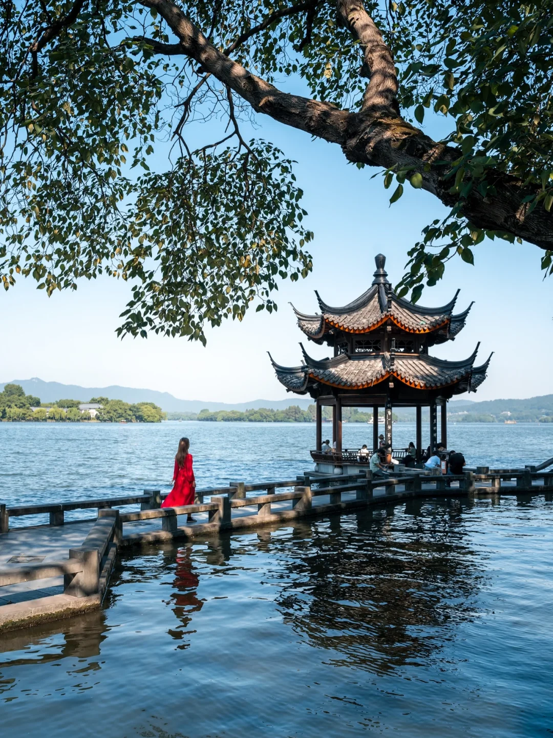 5⃣️所有的地方拍完之后西湖就开始人山人海了,而这时候你已经回到酒店吹着空调补觉了,中午出来吃个饭,下午再逛逛其他地方,不是美滋滋么